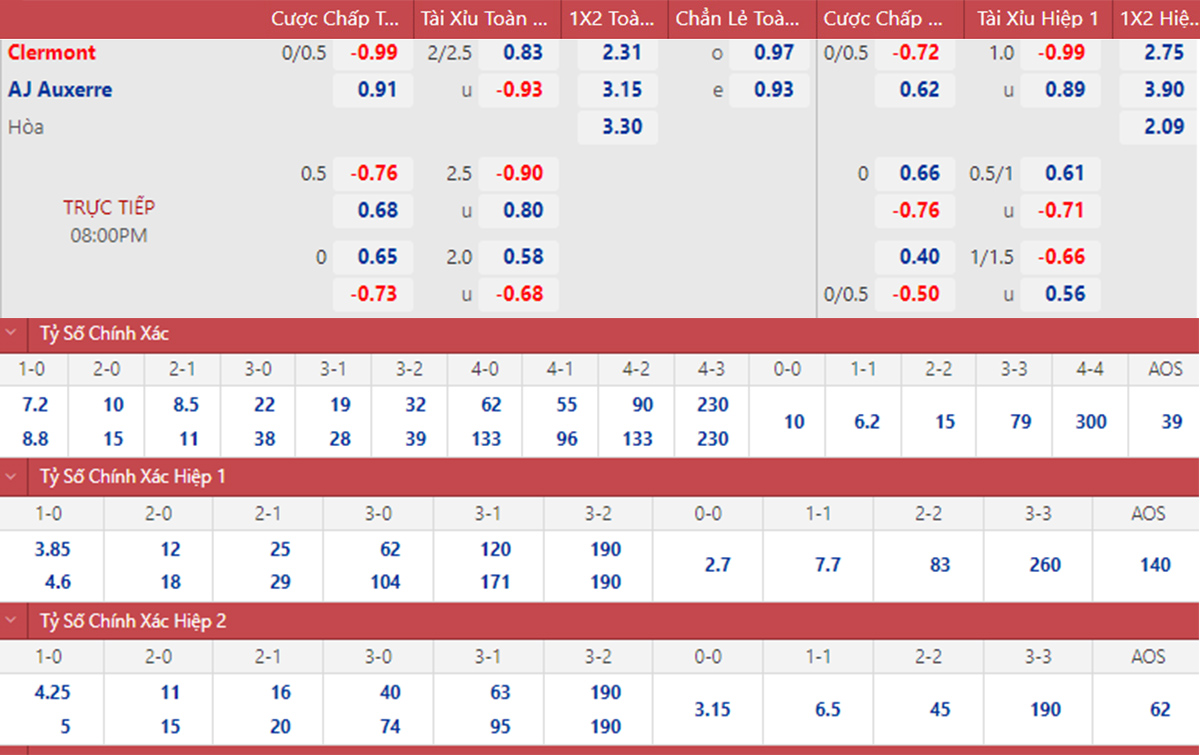 Xét về phong độ và chất lượng đội hình, Clermont đang được đánh giá cao hơn nhiều so với Auxerre, những người chỉ toàn hòa và thua trong 5 trận gần nhất.