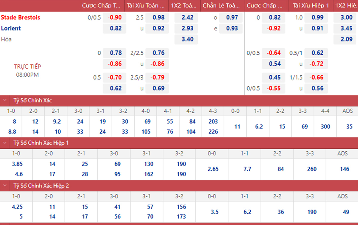 Dù được chơi trên sân nhà nhưng Brest khó lòng gây được bất ngờ trước một Lorient đang có phong độ cao. Dự đoán đội khách sẽ có một chiến thắng cách biệt vào Chủ nhật.