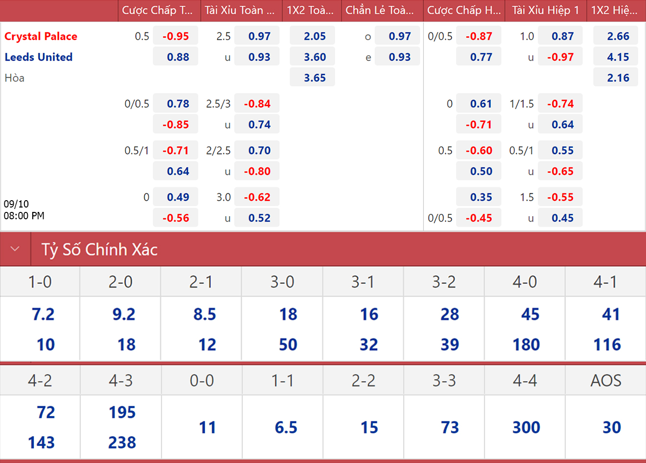 Soi kèo nhà cái Crystal Palace vs Leeds. Nhận định, dự đoán bóng đá Anh (20h00, 9/10). Dự đoán bóng đá Crystal Palace vs Leeds. Tỷ lệ kèo bóng đá Anh. Soi kèo Ngoại hạng Anh.