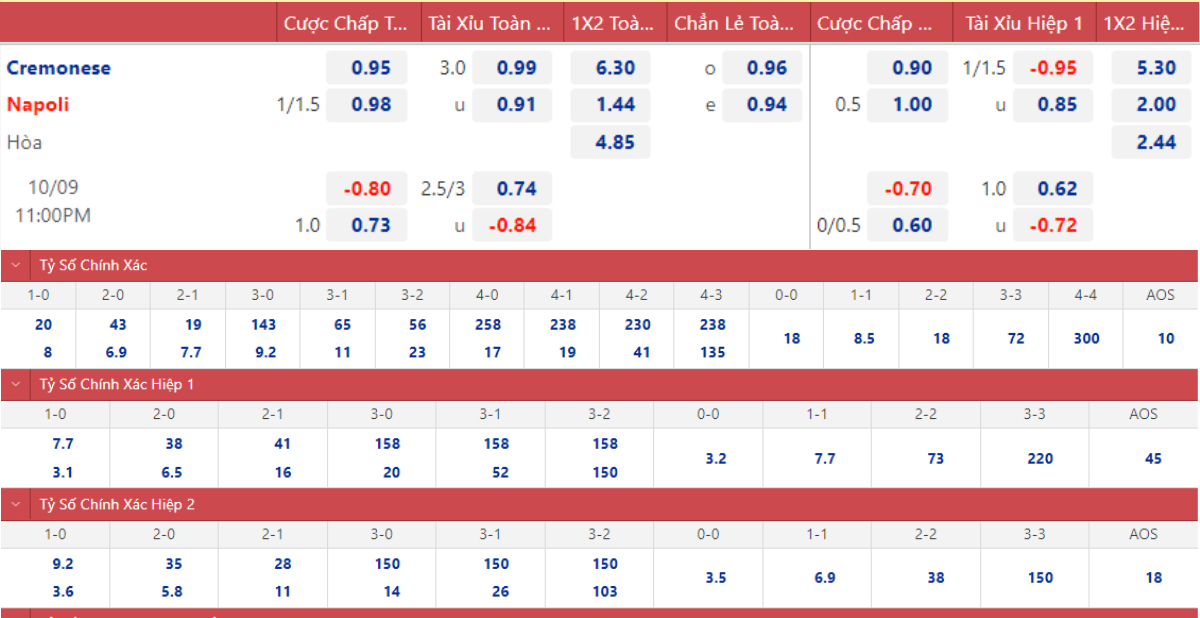 Soi kèo nhà cái Cremonese vs Napoli. Nhận định bóng đá Serie A (23h00, 9/10). Dự đoán bóng đá Cremonese vs Napoli. Tỷ lệ kèo bóng đá Ý.