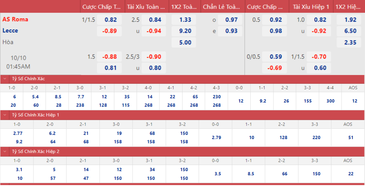 Soi kèo nhà cái Roma vs Lecce. Nhận định, dự đoán bóng đá Serie A (1h45, 10/10). Dự đoán bóng đá Roma vs Lecce. Tỷ lệ kèo bóng đá Ý.