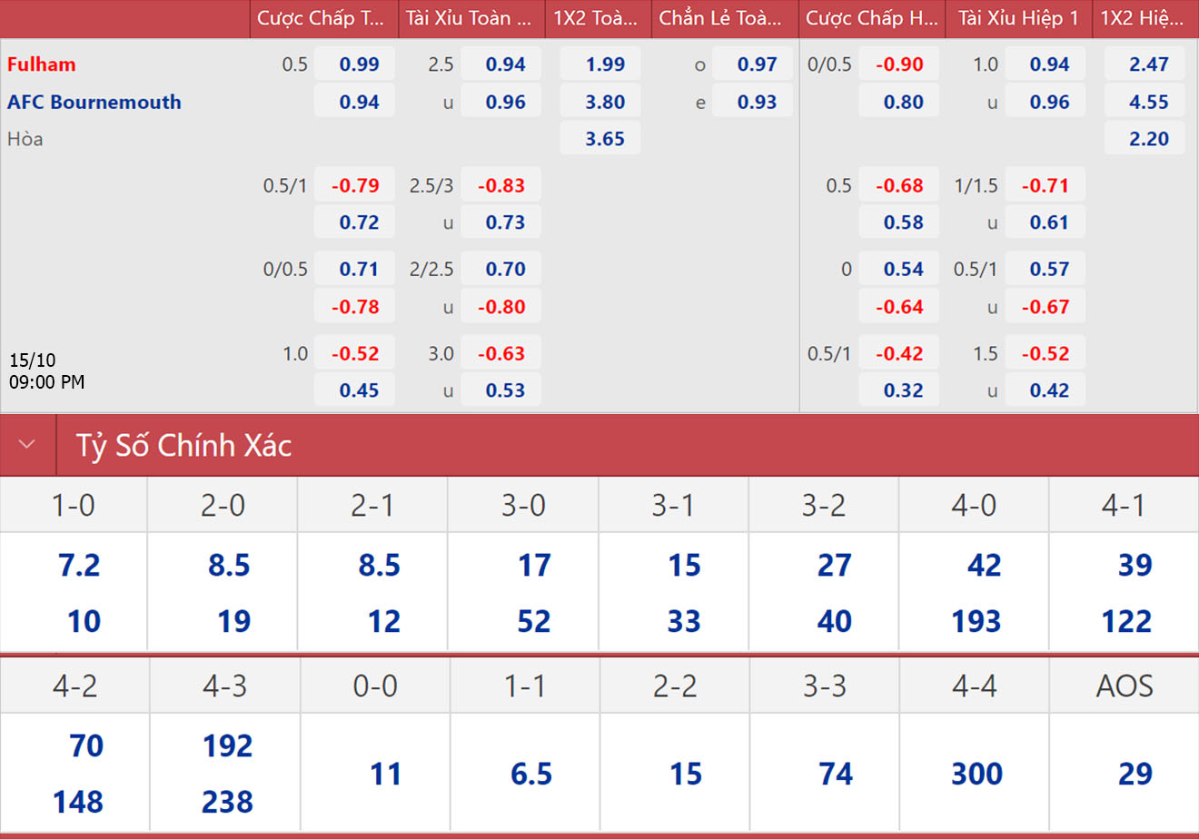 Soi kèo nhà cái Fulham vs Bournemouth. Nhận định, dự đoán bóng đá Anh (21h00, 15/10). Dự đoán bóng đá Fulham vs Bournemouth. Tỷ lệ kèo bóng đá Anh. Soi kèo Ngoại hạng Anh.