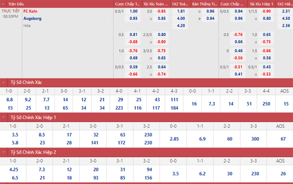 Cologne đang có phong độ không tốt. Họ đã thua 3 trận liên tiếp và thủng lưới tận 8 bàn trong thời gian đó. Ngược lại, Augsburg đang có chuỗi 5 trận bất bại.