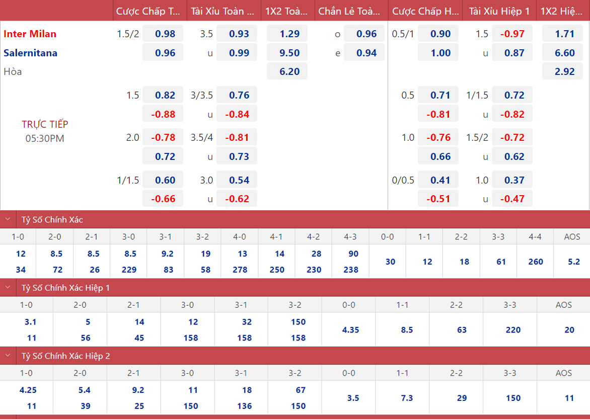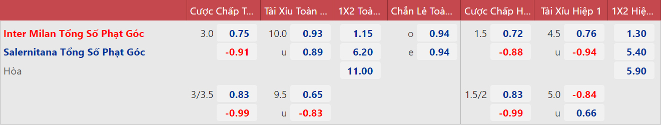 Inter vừa trải qua 3 trận đấu khó khăn với 2 thắng và 1 hòa. Trận hòa 3-3 trên sân Camp Nou của Barcelona thực tế có thể coi là một chiến thắng của Inter Milan lúc này. Điều đó cho thấy phong độ của họ thời điểm này rất tốt. Do vậy, tiếp đón Salernita trên sân nhà sẽ là nhiệm vụ dễ dàng đối với Inter. Tuy nhiên, Inter vẫn cần phải giữ sức cho đấu trường C1 nên Inter sẽ không dốc sức để thắng đậm Salernitana ở thời điểm này.