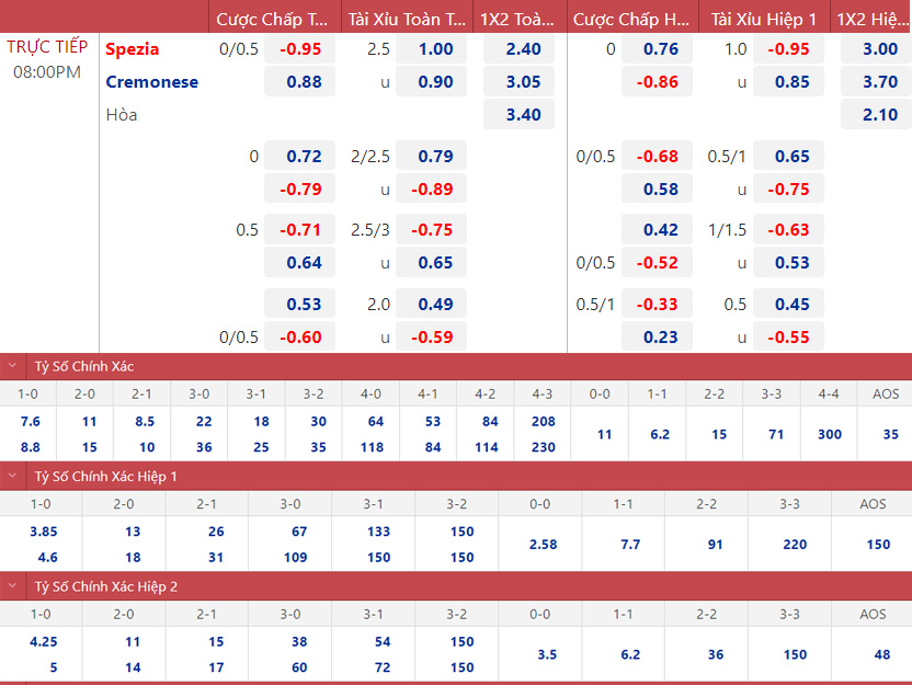 Soi kèo nhà cái Spezia vs Cremonese. Nhận định, dự đoán bóng đá Serie A (20h00, 16/10). Dự đoán bóng đá Spezia vs Cremonese. Tỷ lệ kèo bóng đá Ý.