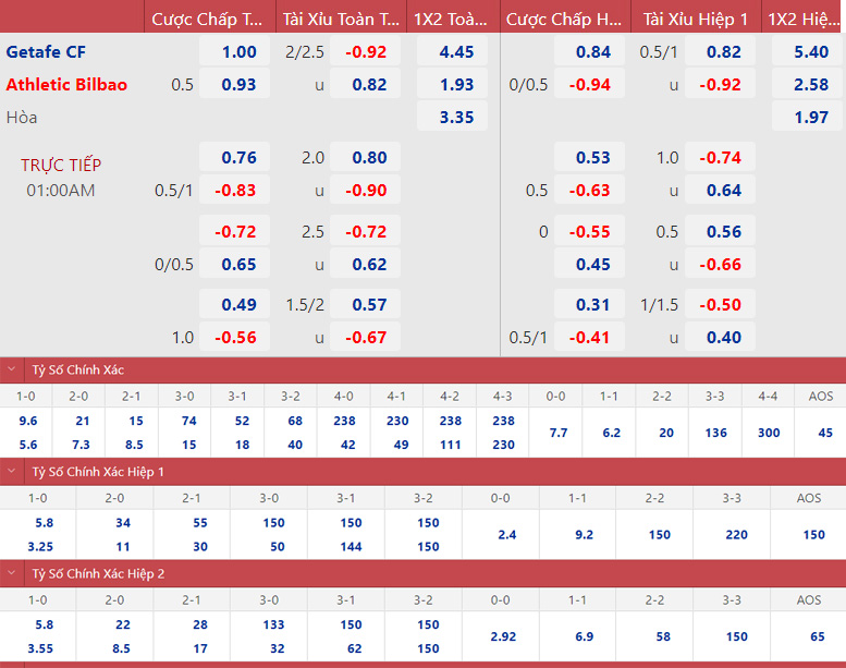 Trong sáu trận đấu gần đây nhất của họ, Getafe đã thắng hai, hòa một và thua ba. Trong khi đó, Athletic Club đã thắng 3, hòa 1 và thua 2 trong 6 trận gần nhất.