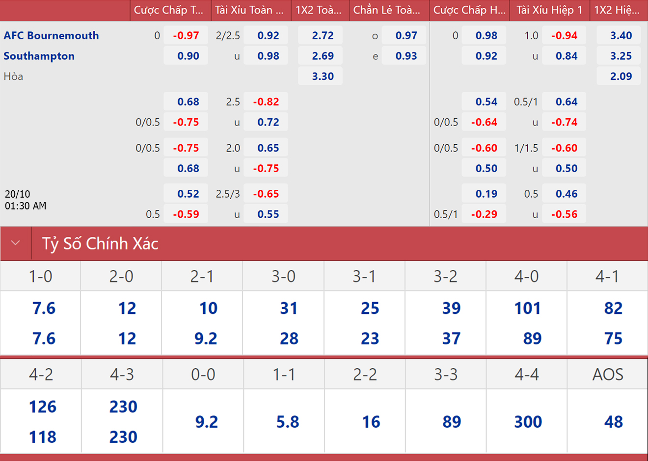 Soi kèo nhà cái Bournemouth vs Southampton. Nhận định, dự đoán bóng đá Anh (01h30, 20/10). Dự đoán bóng đá Bournemouth vs Southampton. Tỷ lệ kèo bóng đá Anh. Soi kèo Ngoại hạng Anh.