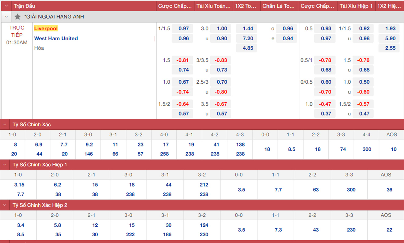 West Ham đang thi đấu khởi sắc với chuỗi 3 trận bất bại tại Ngoại hạng Anh, trong đó có 2 trận thắng và 1 trận hoà. Tuy nhiên West Ham được dự đoán khó có thể làm nên chuyện trước một Liverpool đang rất tự tin.