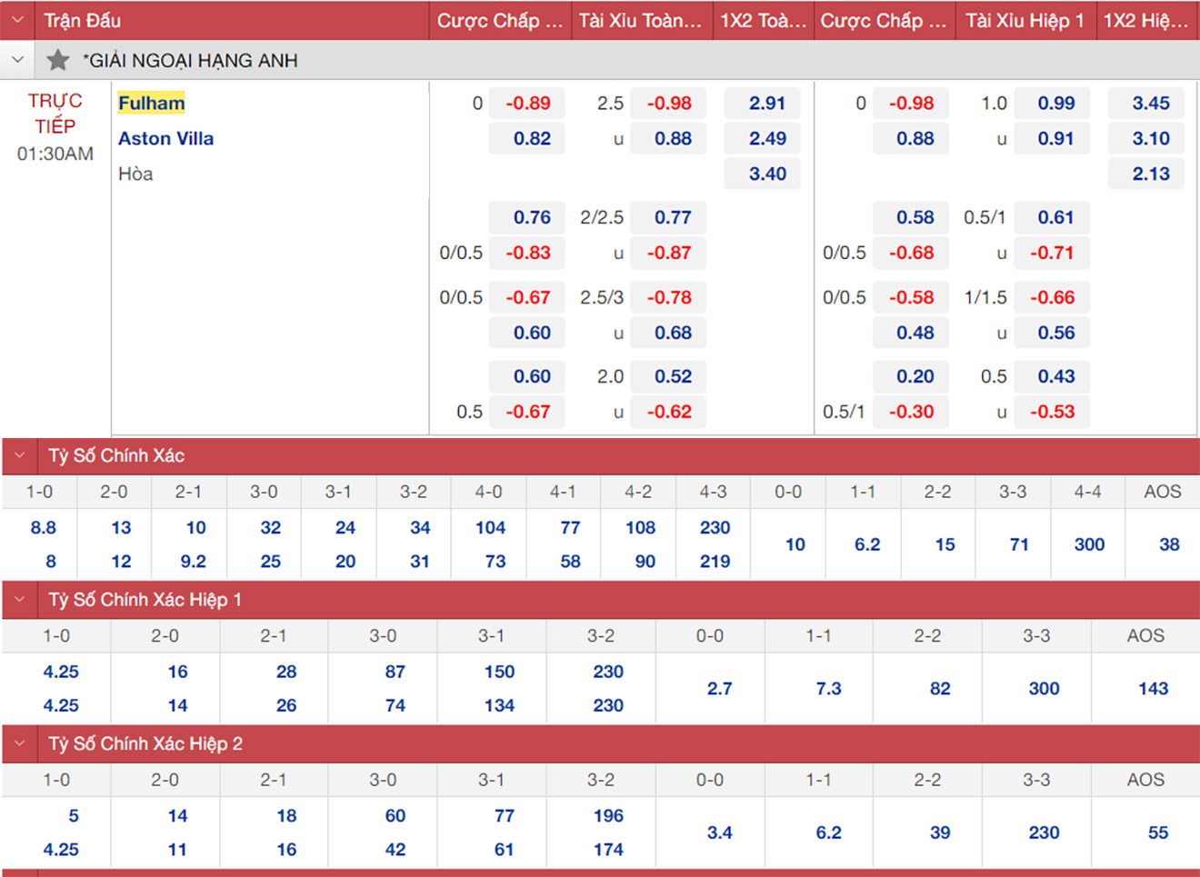 Cả Fulham và Aston Villa đều không có phong độ tốt. Fulham chỉ thắng 1 trong 5 trận gần nhất. Trong khi đó, Aston Villa cũng chỉ thắng 1 trong 5 trận gần nhất.