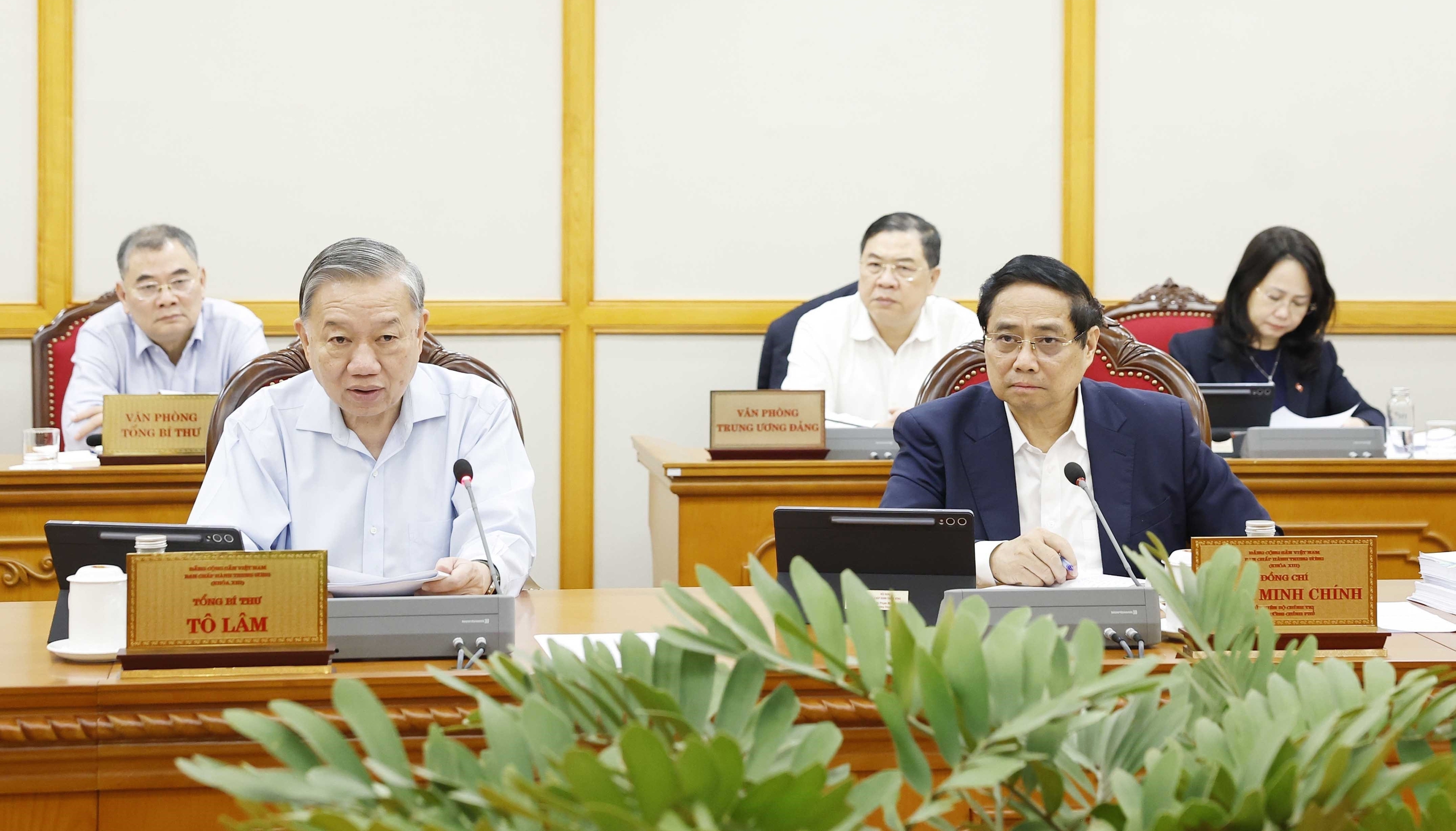 Ngày 31/10/2025, tại Trụ sở Trung ương Đảng, Bộ Chính trị, Ban Bí thư họp nghe báo cáo về tình hình, kết quả hoạt động của bộ máy hệ thống chính trị và chính quyền địa phương 2 cấp tháng 10/2025.