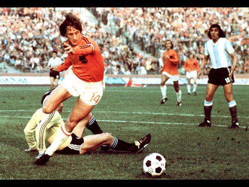 Tất nhiên, sẽ là thiếu sót nếu không nói đến “trái tim” của đội tuyển Hà Lan - danh thủ Johan Cruyff. Người Hà Lan bay này có mặt ở mọi lúc, mọi nơi. Chính Johan Cruyff dẫn dắt toàn đội tấn công và cũng chính danh thủ này chỉ huy toàn đội phòng ngự. Vừa thấy Johan Cruyff trong vòng cấm địa của đối phương, vậy mà khoảnh khắc sau đó đã thấy anh có mặt ở tuyến sau để bắt đầu kiến thiết một đợt tấn công mới. Johan Cruyff chuyền một đường bóng dài để đồng đội dâng cao. Anh cũng phát hiện lỗ hổng nơi hàng phòng ngự của người Argentina để khoan sâu vào đó. Tựu trung, Johan Cruyff là nhạc trưởng thiên tài, giữ nhịp điệu cho các đồng đội của mình, gây niềm hứng khởi nơi họ và nhẹ nhàng đè bẹp sự phản kháng của đối thủ. Anh chính là người đội trưởng đích thực của bóng đá tổng lực.