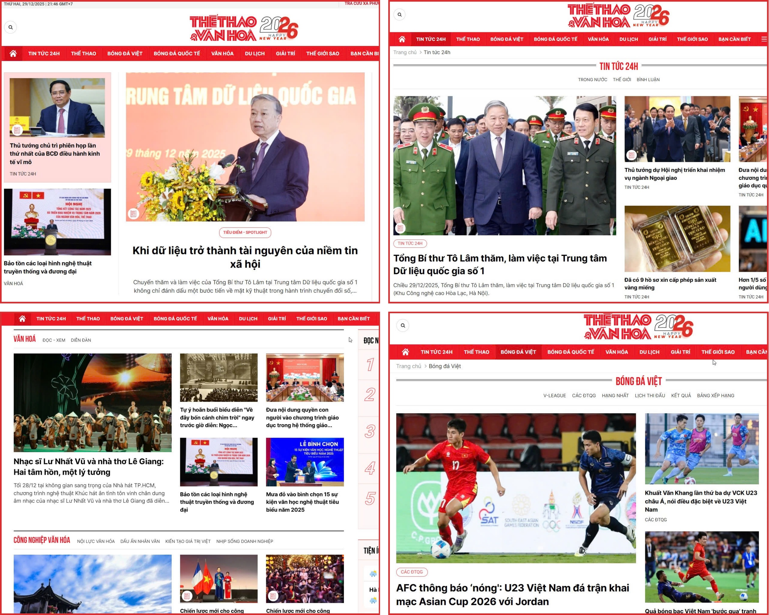 Thể thao và Văn hóa ra mắt giao diện điện tử mới ngay trong những ngày đầu năm 2026