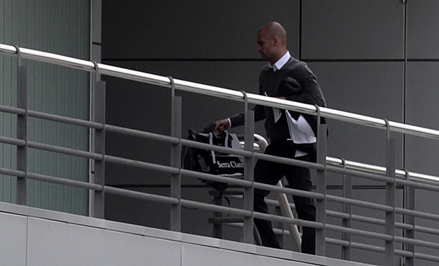 Pep trên đường tới phòng họp báo của sân Camp Nou