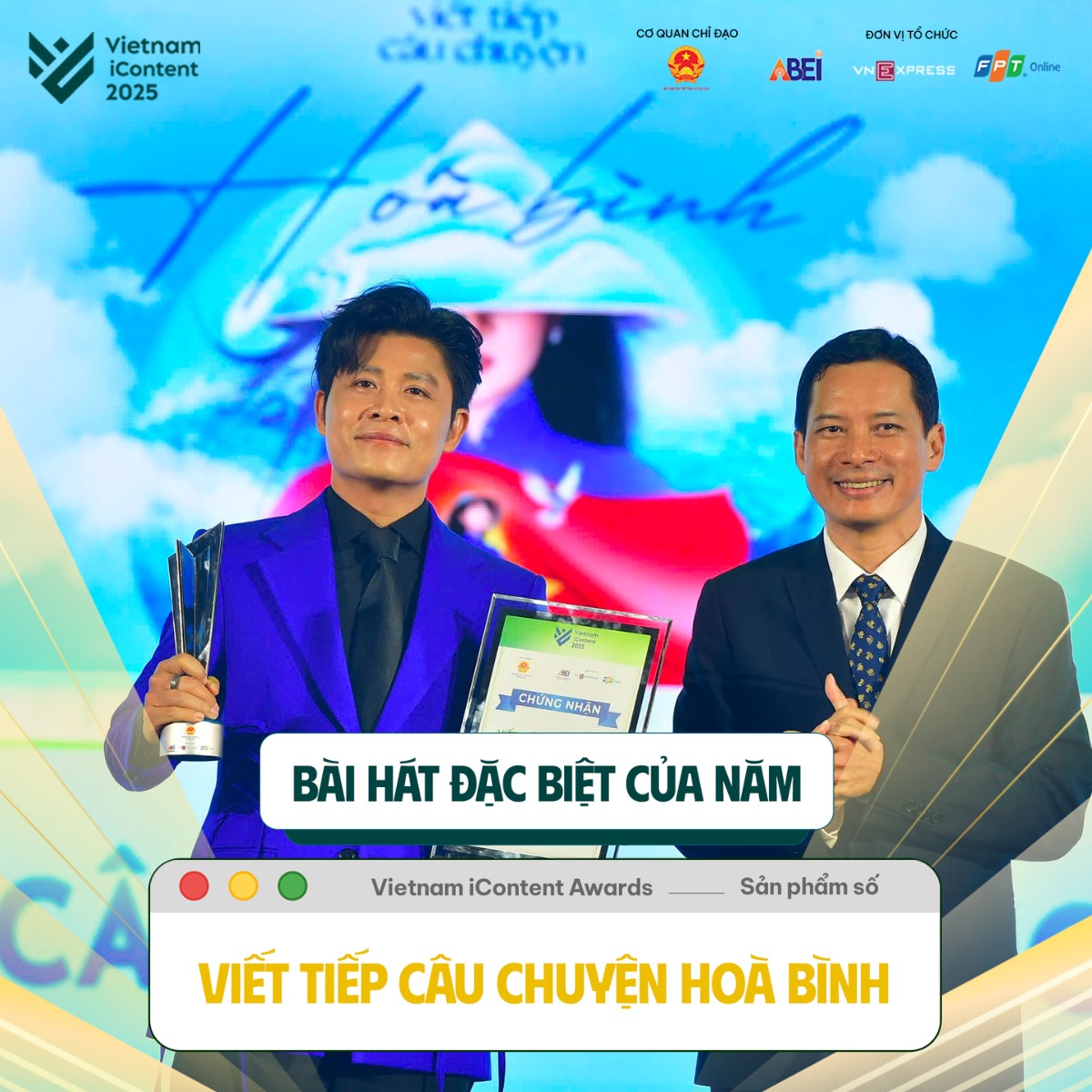 Đặc biệt, Viết tiếp câu chuyện hoà bình của nhạc sĩ Nguyễn Văn Chung được trao "Bài hát đặc biệt của năm" - một ca khúc gây "sốt" trên mạng xã hội nhờ thông điệp hoà bình và cảm xúc chân thành.