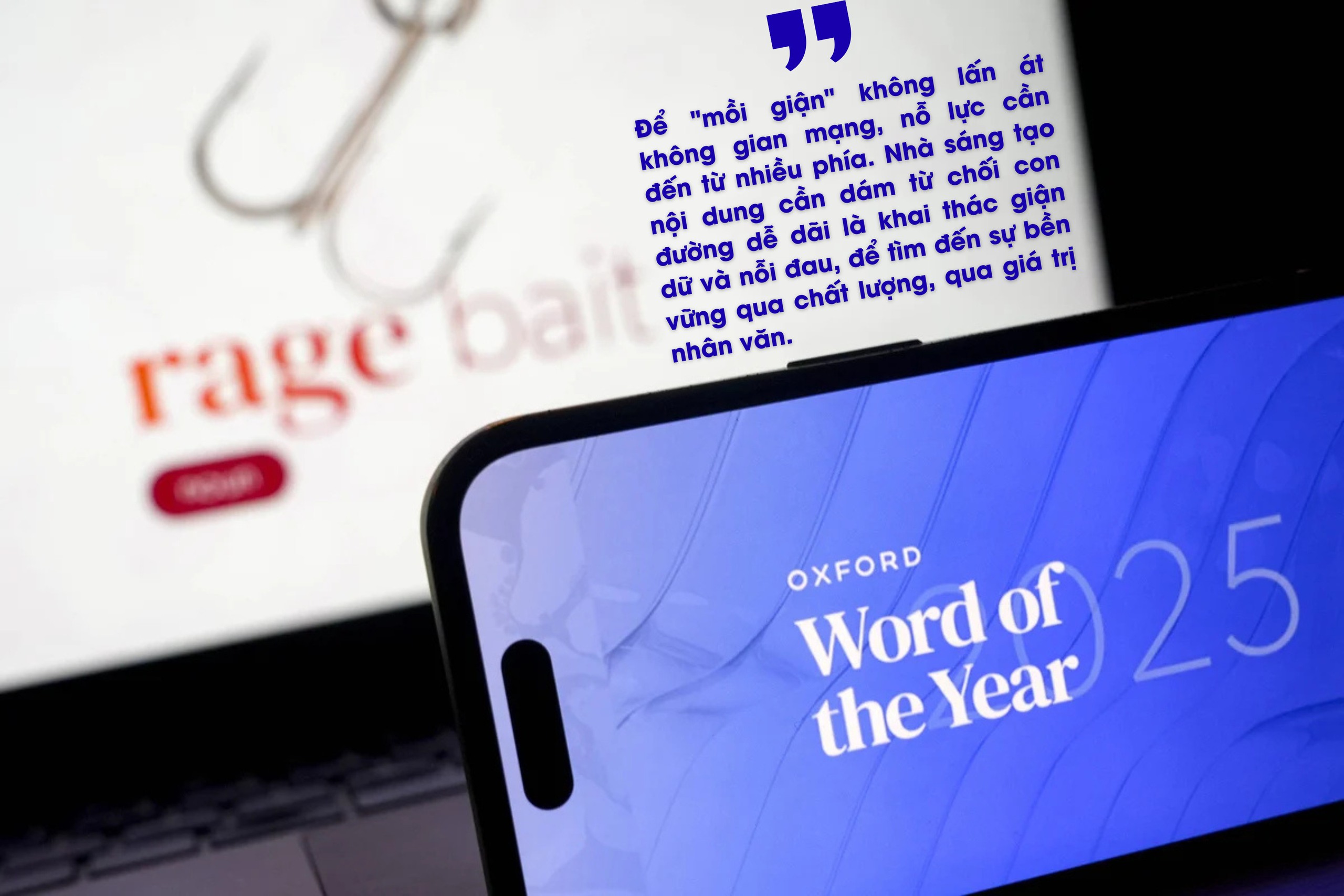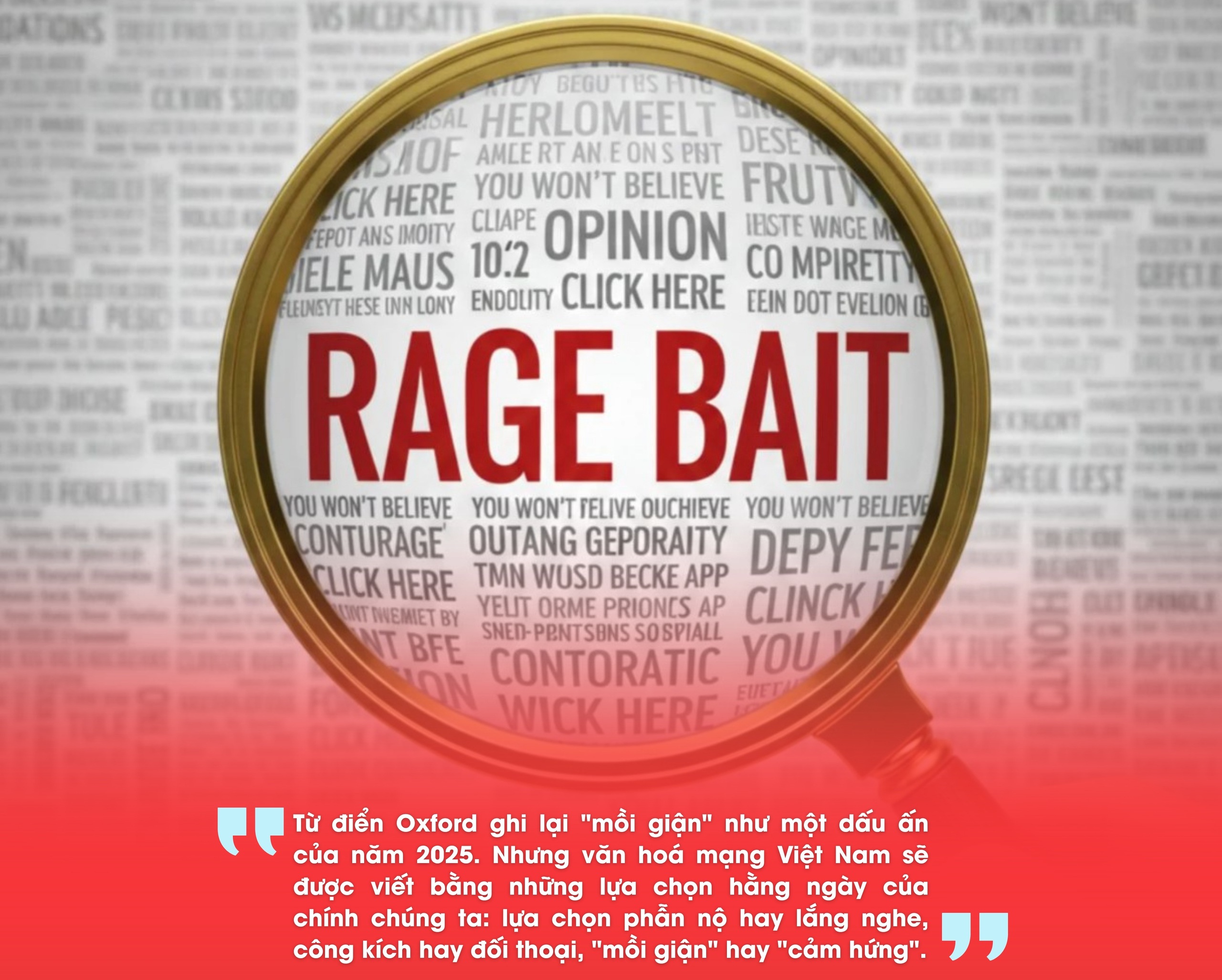 Nếu năm 2024, Oxford chọn "brain rot" - "thối não" - để mô tả tình trạng kiệt quệ tinh thần vì lướt mạng vô thức, thì "mồi giận" của 2025 là bước tiếp theo của vòng xoáy ấy.