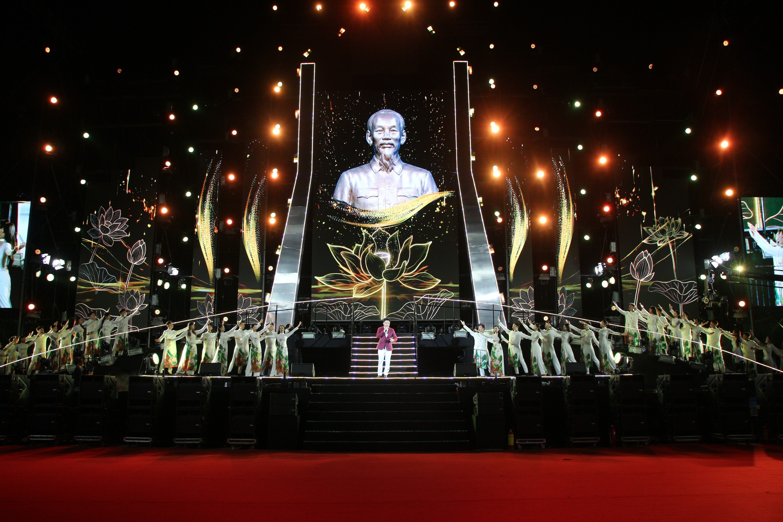 Những tiết mục biểu diễn ca ngợi Đảng quang vinh, Bác Hồ vĩ đại. Ảnh: Tuấn Anh - TTXVN