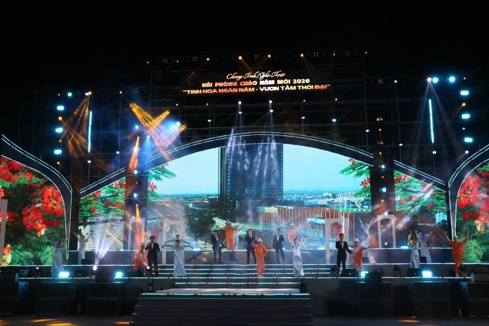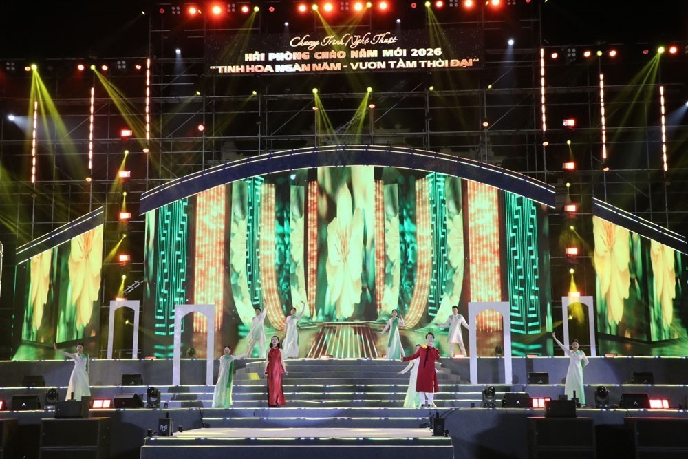 Tại quảng trường Nhà hát thành phố Hải Phòng đã diễn ra chương trình nghệ thuật chào năm mới 2026 với chủ đề “Tinh hoa ngàn năm - Vươn tầm thời đại”.