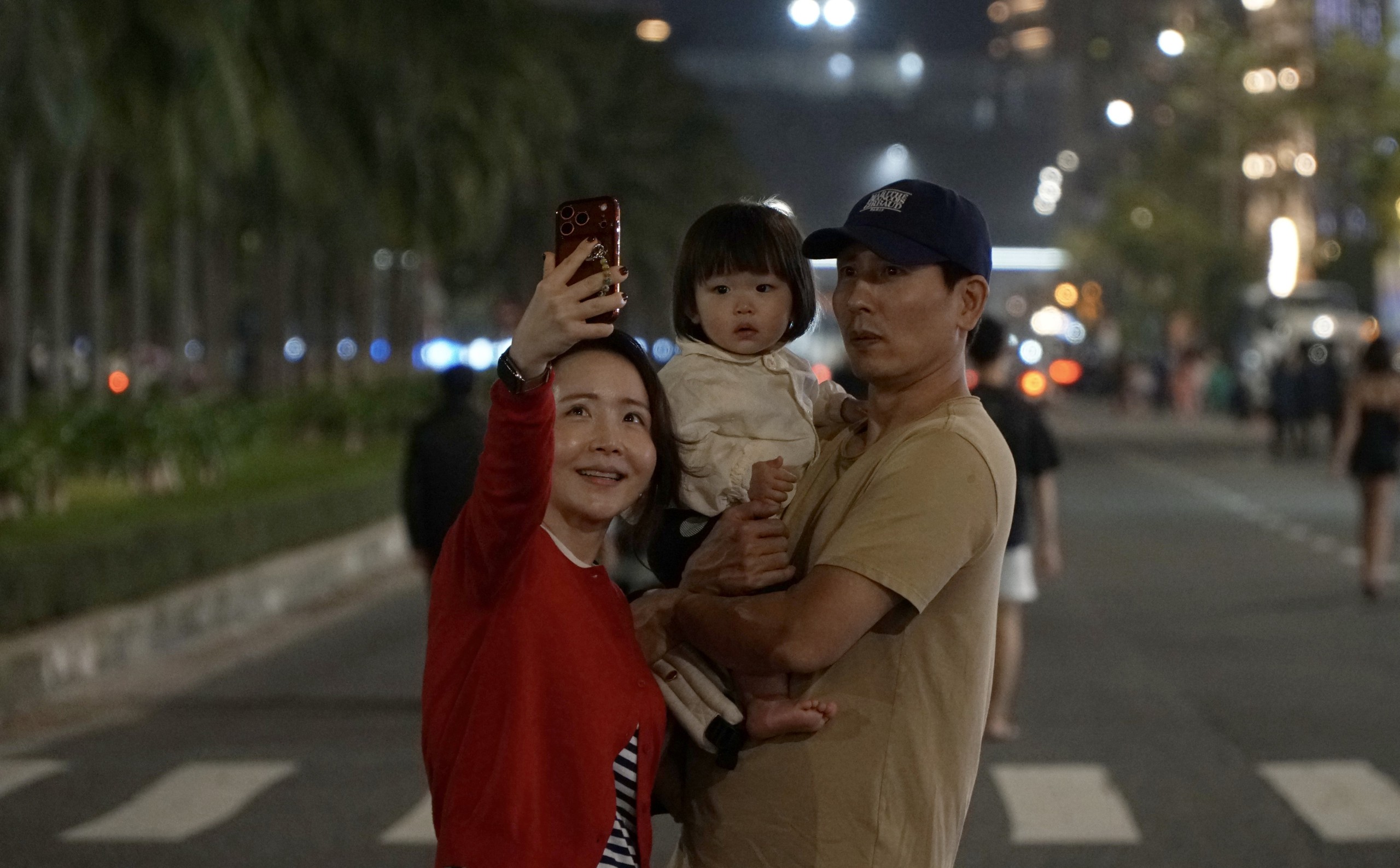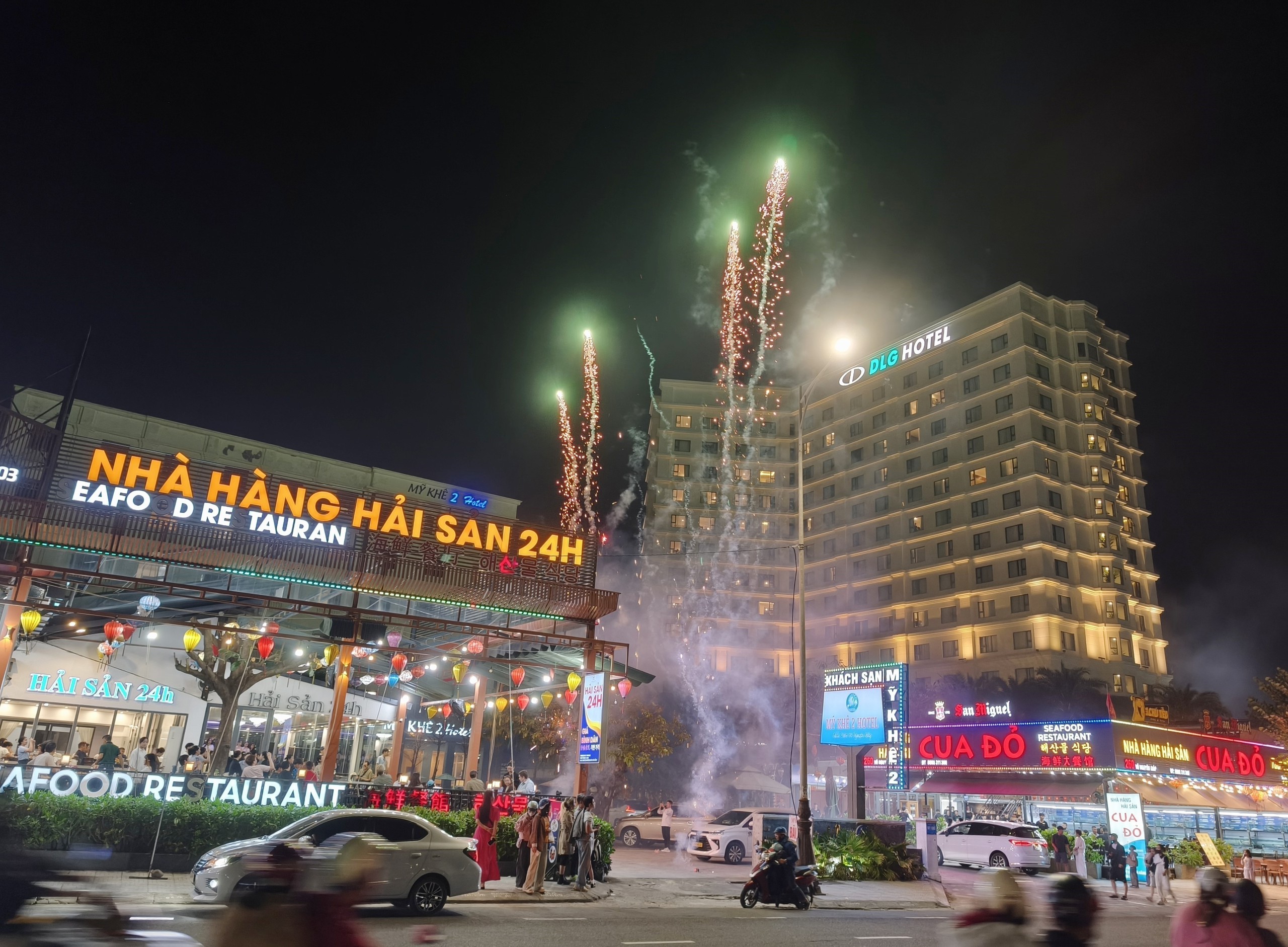 Trong thời khắc chuyển giao, tạm biệt năm 2025, chào đón năm 2026, thành phố Đà Nẵng rộn ràng, rực rỡ trong muôn vàn ánh đèn lung linh. Hàng ngàn du khách và người dân đã đổ về Công viên Biển Đông (phường An Hải, thành phố Đà Nẵng) và các bãi biển, quảng trường, tuyến phố trung tâm thành phố để chờ đón giao thừa.