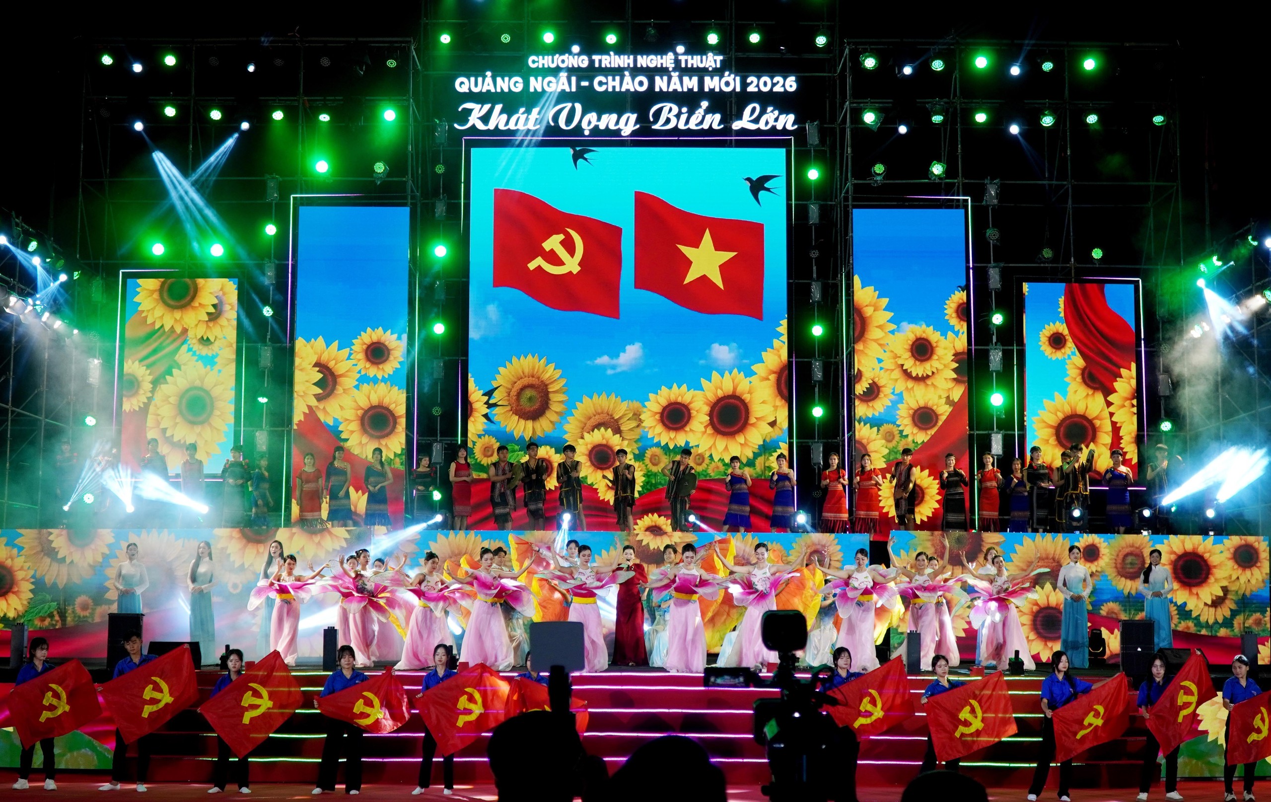 Tại Quảng trường Phạm Văn Đồng, phường Cẩm Thành (Quảng Ngãi) diễn ra chương trình nghệ thuật “Quảng Ngãi chào năm mới 2026” với chủ đề “Khát vọng biển lớn”.