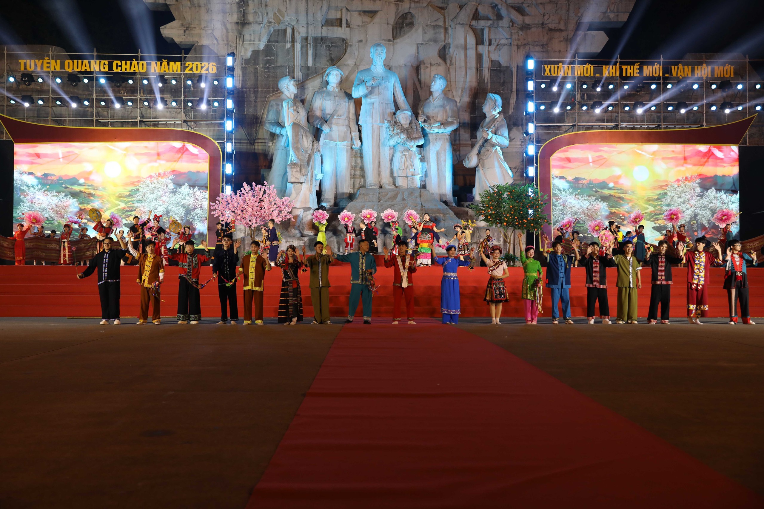 Tại Quảng trường Nguyễn Tất Thành, phường Minh Xuân, UBND tỉnh Tuyên Quang tổ chức Chương trình “Tuyên Quang chào năm 2026” với chủ đề “Xuân mới - Khí thế mới - Vận hội mới” diễn ra sôi động, mang không khí hân hoan đón chào năm mới 2026.