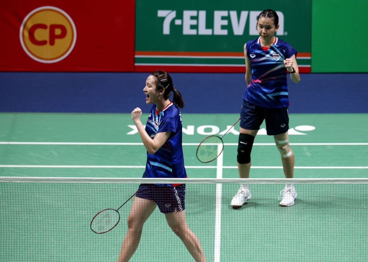 Bước vào trận đôi nữ đầu tiên, cặp "tạm ghép" Supissara Paewsampran – Benyapa Aimsaard đã thi đấu xuất sắc trước Rachel Alessia Rose – Febby Setianingrum. Dù bị Indonesia kéo vào thế giằng co căng thẳng, đôi nữ Thái Lan vẫn giành chiến thắng nghẹt thở 2-1 với các tỉ số 21-18, 11-21, 21-18, qua đó gỡ hòa 1-1 và giúp đội tuyển giải tỏa áp lực.