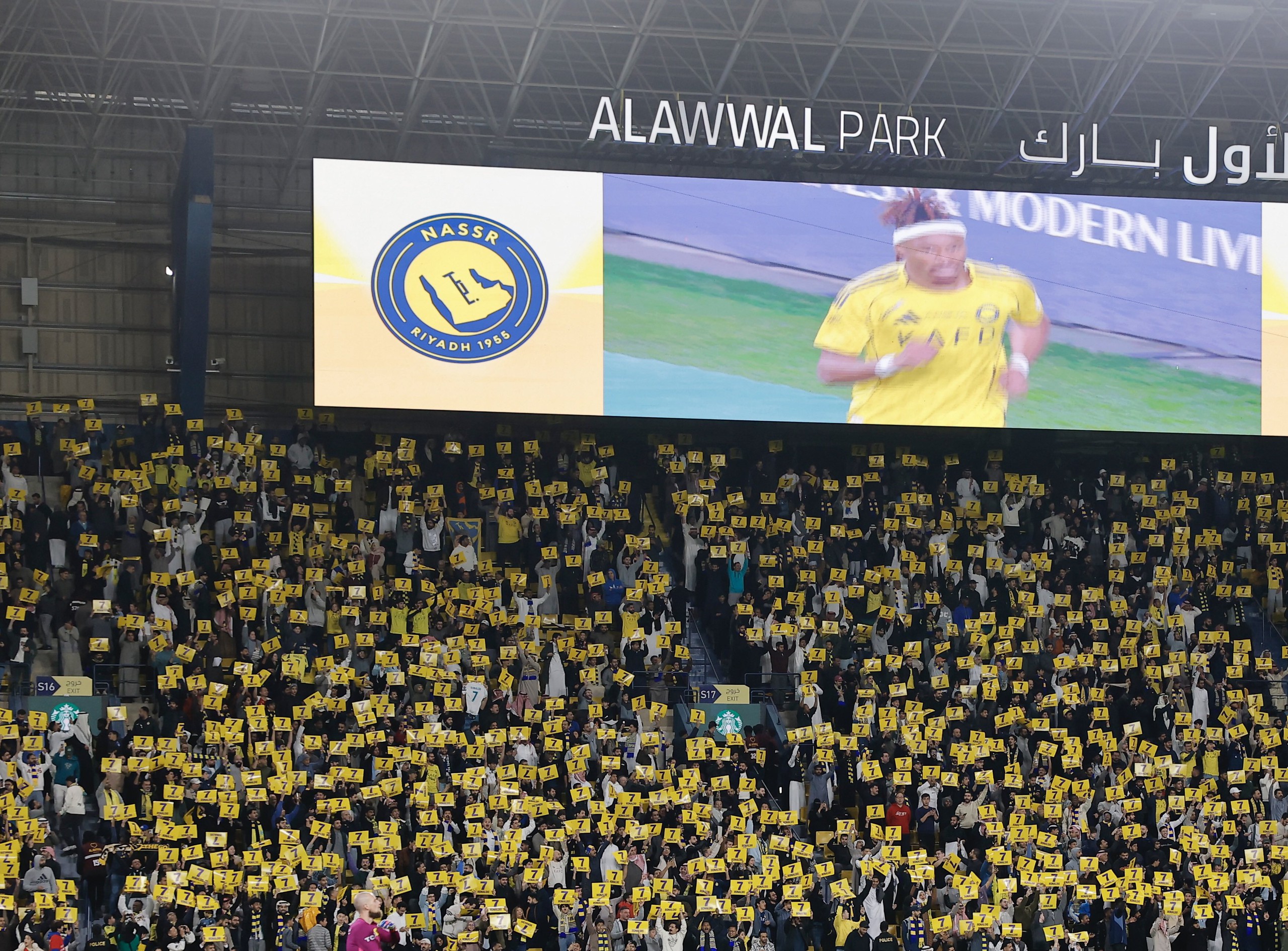 Khi trận đấu bắt đầu, đến phút thứ 7, các CĐV Al Nassr đã đồng loạt giơ cao biểu ngữ mang tên Ronaldo và số áo của anh, khiến khán đài gần như được "phủ kín" bởi con số 7.