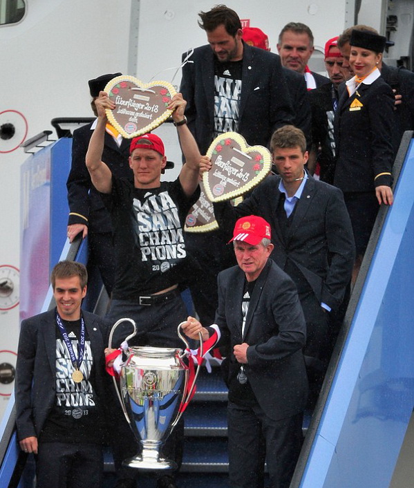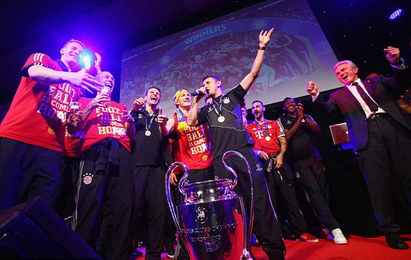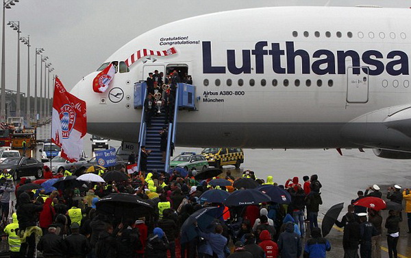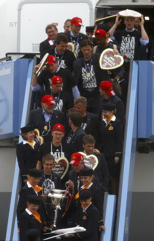 (Thethaovanhoa.vn) - Sau bữa tiệc hoàng tráng kéo dài tới tận sáng hôm sau ở khách sạn Grosvenor House Hotel, London, các cầu thủ và BHL của Bayern đã về tới Munich trong chuyến bay của hãng hàng không Lufthansa.
