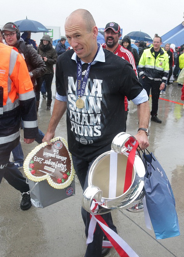 Người hùng của trận chung kết, tiền đạo Arjen Robben. ![]() Trước đó, Bayern đã có một đêm vui chơi hết mình tại khách sạn hạng sang ở London. |