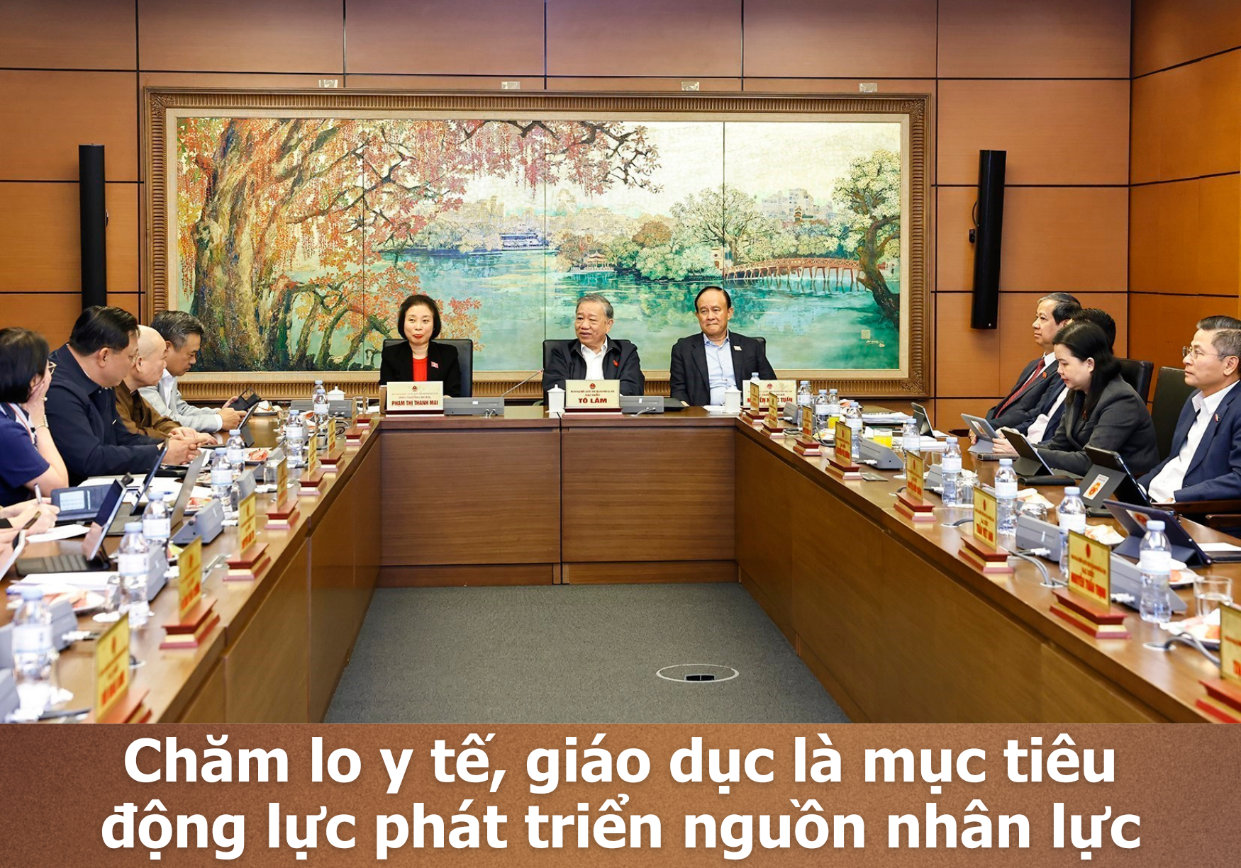 Phát biểu tại thảo luận tổ, Tổng Bí thư Tô Lâm khẳng định, y tế và giáo dục là những trụ cột quan trọng của xã hội. Đây không chỉ là mục tiêu mà còn là động lực phát triển nguồn nhân lực - một trong ba trọng tâm đột phá. Mục tiêu là chăm lo cho con người, có nguồn nhân lực tốt, sức khỏe và bản lĩnh, tư duy kiến thức, tri thức để xây dựng và phát triển đất nước.