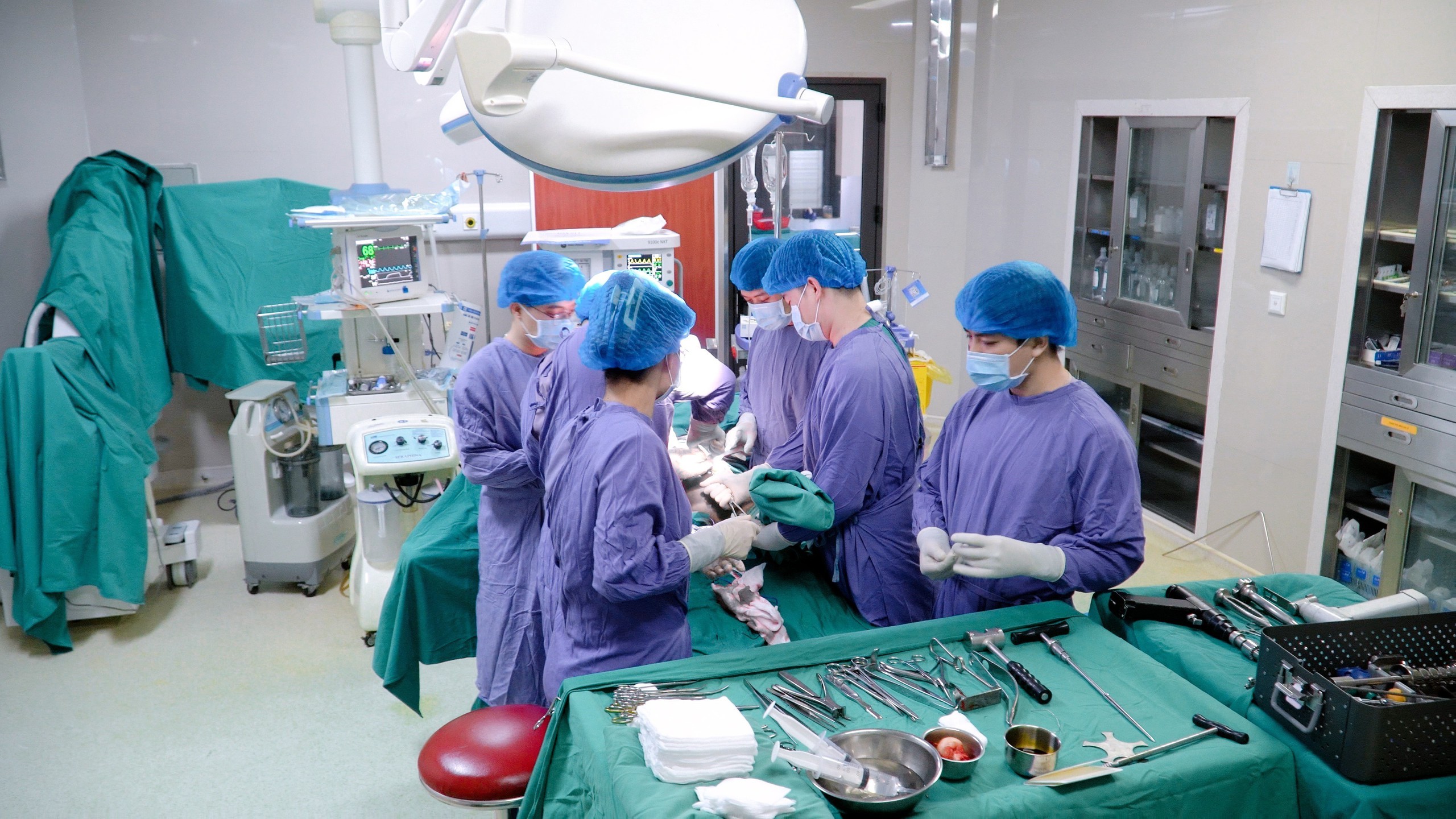 Bệnh viện đa khoa Hùng Vương, tỉnh Phú Thọ thực hiện phẫu thuật thay khớp háng cho bệnh nhân. Ảnh: Nguyễn Thảo - TTXVN