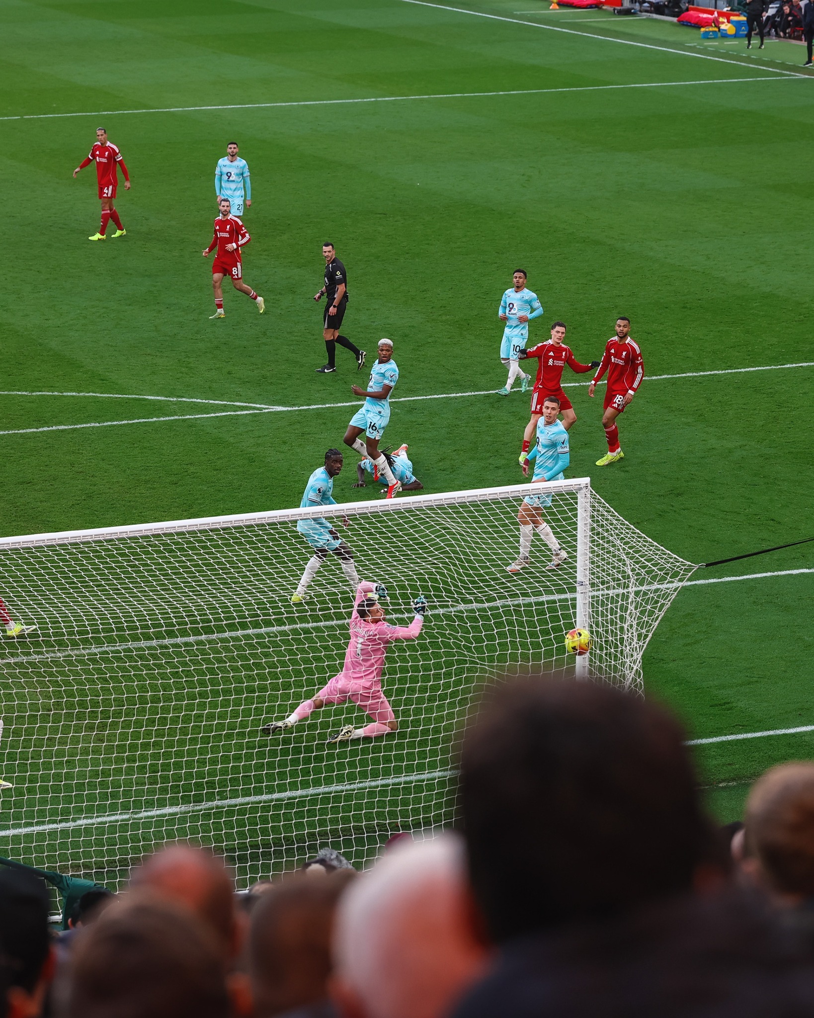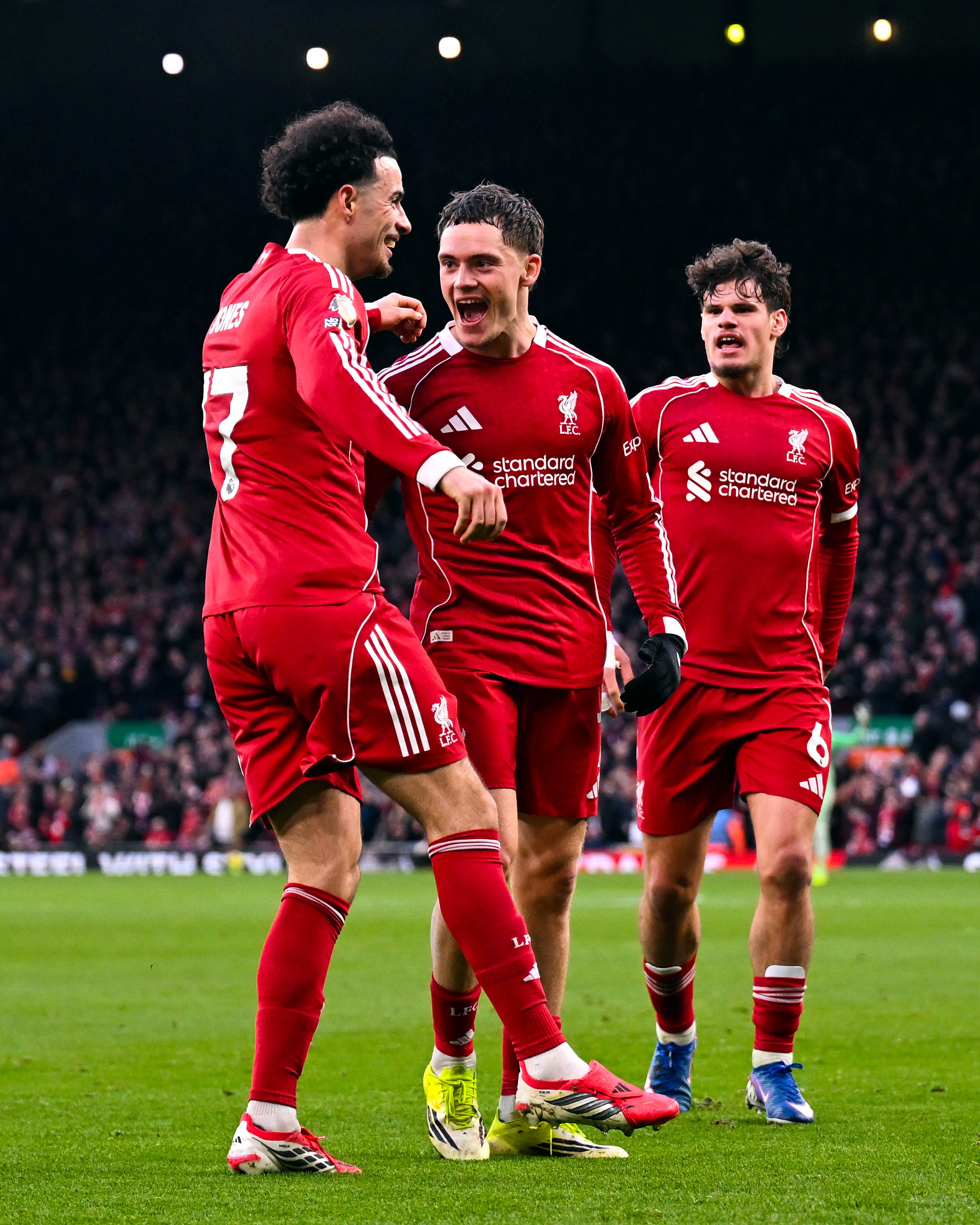 Trái ngược với niềm vui của Chelsea, Liverpool tiếp tục khiến người hâm mộ phải thất vọng khi để Burnley cầm hòa 1-1 ngay trên sân Anfield. Với lợi thế sân nhà, "Lữ đoàn đỏ" nhập cuộc đầy chủ động và sớm áp đặt thế trận trước đối thủ đang nằm trong nhóm cuối bảng. Phút 30, Jeremy Frimpong tung cú vô lê đầy uy lực, nhưng thủ thành Martin Dubravka đã chơi tập trung để cứu thua cho Burnley. Dù chịu sức ép lớn, Burnley vẫn kiên trì phòng ngự và chờ đợi cơ hội phản công. Tuy nhiên, trước khi hiệp 1 khép lại, hàng thủ đội khách đã không thể đứng vững. Ở phút 42, từ một tình huống phối hợp nhuần nhuyễn trong vòng cấm, Florian Wirtz tung cú dứt điểm tinh tế mở tỷ số 1-0 cho Liverpool.