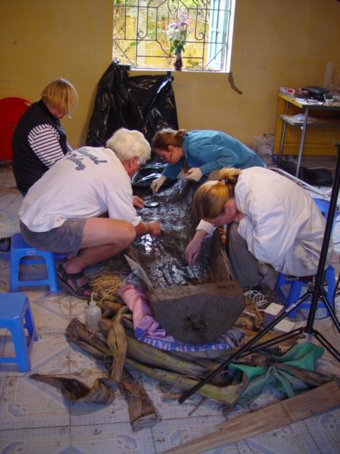 Vốn là năm 2000, tiến sĩ Bùi Văn Liêm đã khai quật chữa cháy mấy mộ thân cây khoét rỗng Yên Bắc. Thấy đoàn khảo cổ, dân chúng dẫn chúng tôi đến ngay khu mộ để chứng kiến một ngôi mộ Đông Sơn vừa bị đào trộm mấy ngày hôm trước. Nhận thấy quan tài, ván nhà mồ và vụn vải còn khá nhiều, tôi quyết định khai quật lại ngôi mộ này cùng các chuyên gia Úc. Kết quả khảo cổ đối với chúng tôi rất đáng khích lệ, dù ngôi mộ đã bị khoắng đi những đồ đồng, ngọc, thủy tinh... giá trị nhất.