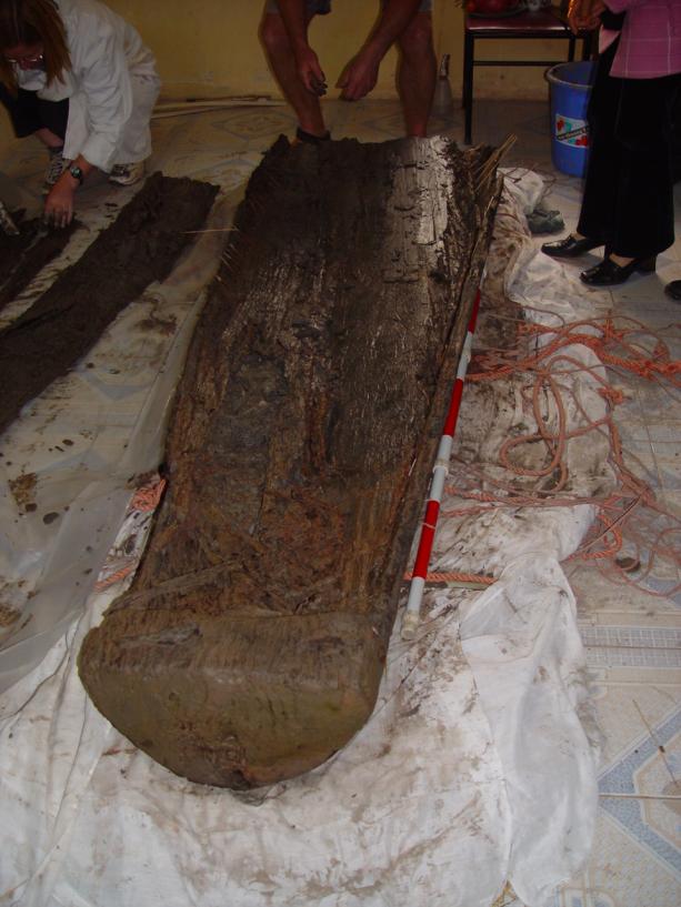 Do hạn chế của khuôn khổ trang báo, tôi đã hứa với bạn đọc dành số này để mô tả chi tiết về con thuyền đó. Bởi lẽ, chính từ phát hiện và nghiên cứu này đã dẫn chúng tôi đến một đề tài quốc tế khác giữa tôi (Trung tâm Tiền sử Đông Nam Á chủ trì) và giáo sư Peter Bellwood (Đại học Quốc gia Úc) thực hiện từ 2004 cho đến nay: "Phát hiện và Nghiên cứu thuyền bè thời Đông Sơn", cơ sở cho ra đời Bảo tàng khảo cổ học tàu thuyền Việt Nam của Trung tâm Tiền sử Đông Nam Á hiện nay.