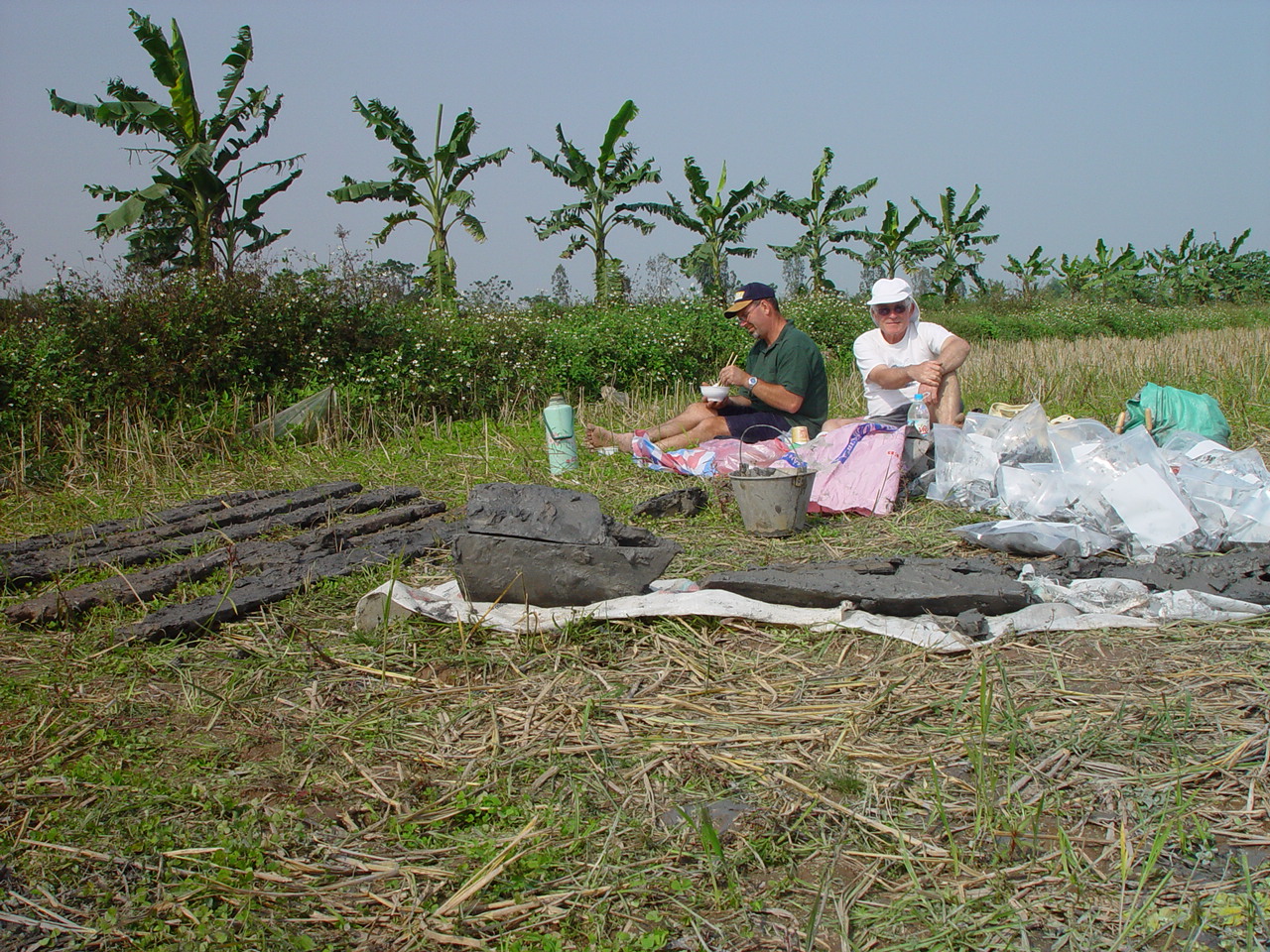 Hôm đó chúng tôi ăn ngay ngoài đồng lúa bên hầm mộ vừa khai quật. Các ván sàn và trần hầm mộ được rửa sơ bộ đã hiện ra các lỗ mộng, chốt ở hai rìa trên dưới. Giáo sư Peter Bellwood mừng rỡ kêu lên: "Đây rồi, chúng (các ván dùng lát sàn và trần hầm mộ) rõ ràng là ván để nâng mạn của thuyền độc mộc như thuyền Động Xá vừa khai quật!".