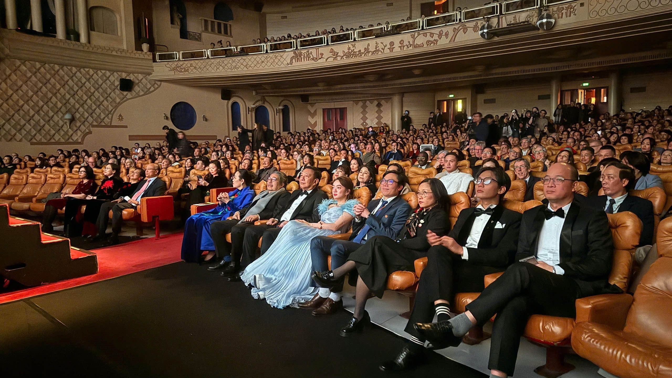 Theo TS Phạm Việt Long, việc ưu tiên điện ảnh thể hiện bước chuyển từ việc chỉ nhấn mạnh chức năng "xây dựng đời sống tinh thần" sang coi trọng vai trò "xây dựng thương hiệu quốc gia từ sản phẩm văn hóa". Trong ảnh: Tuần lễ "Điện ảnh Việt Nam - Hành trình ánh sáng" diễn ra vào tối 5/12 tại Le Grand Rex (Paris)