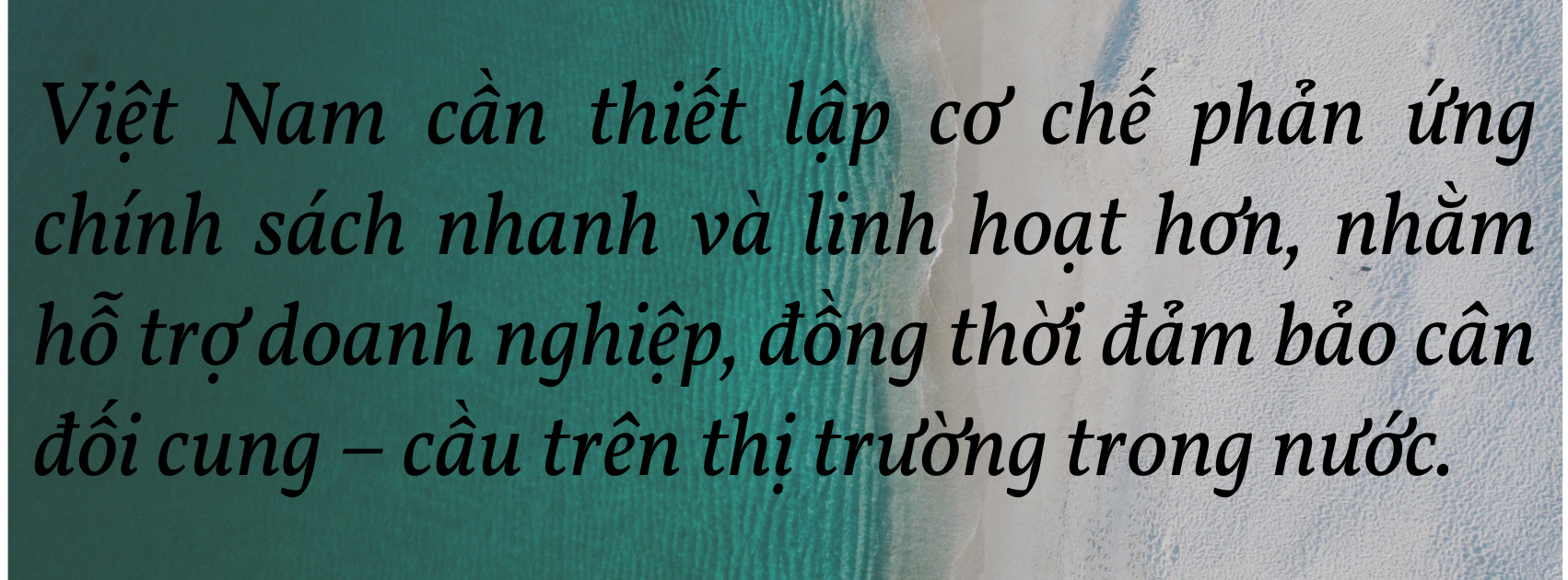 Vì vậy, ông Phụng nhấn mạnh: Việt Nam cần thiết lập cơ chế phản ứng chính sách nhanh và linh hoạt hơn, nhằm hỗ trợ doanh nghiệp, đồng thời đảm bảo cân đối cung – cầu trên thị trường trong nước.