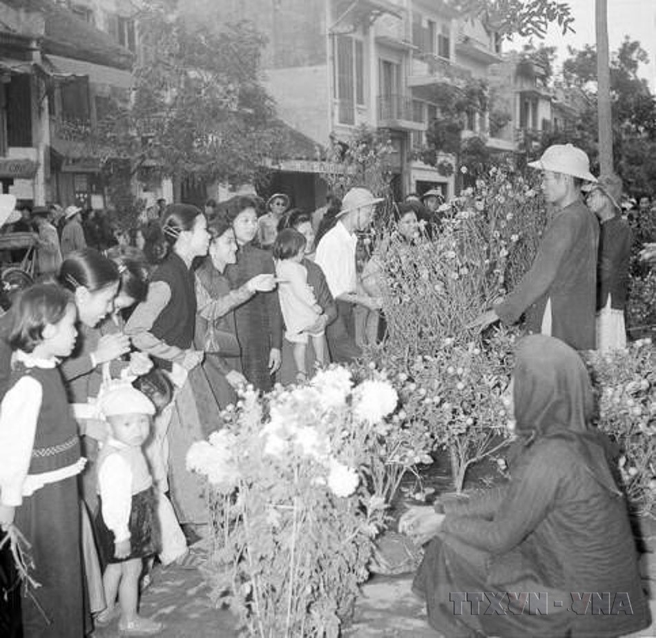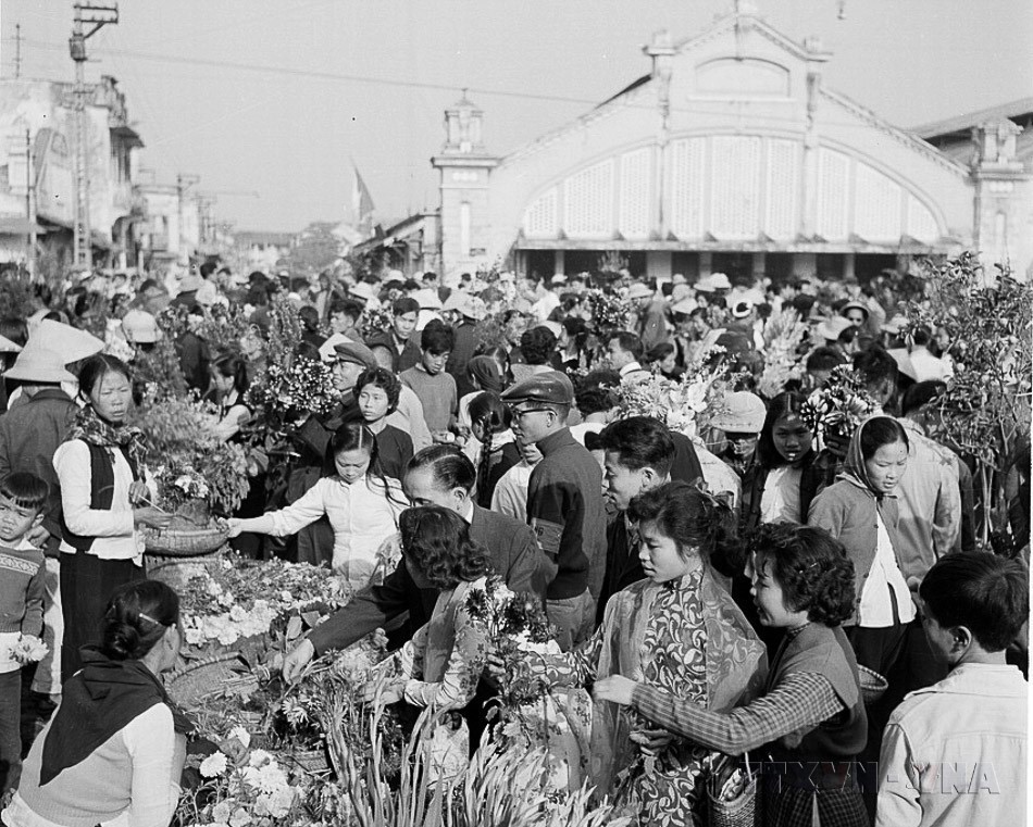 Chợ hoa Tết Quý Mão 1963 tại khu vực Hàng Lược - chợ Đồng Xuân, Hà Nội. Ảnh: TTXVN