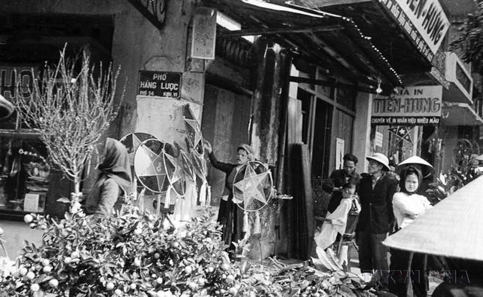 Chợ hoa Hàng Lược Tết Bính Thân 1956. Ảnh: TTXVN