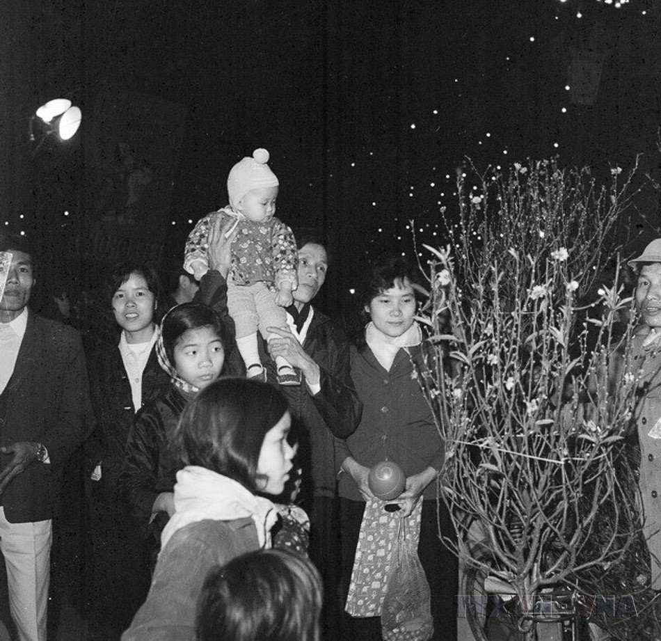 Cả gia đình đi xem hoa tại phố Hàng Lược (Hà Nội) tại Tết Ất Mão (1975). Ảnh: TTXVN