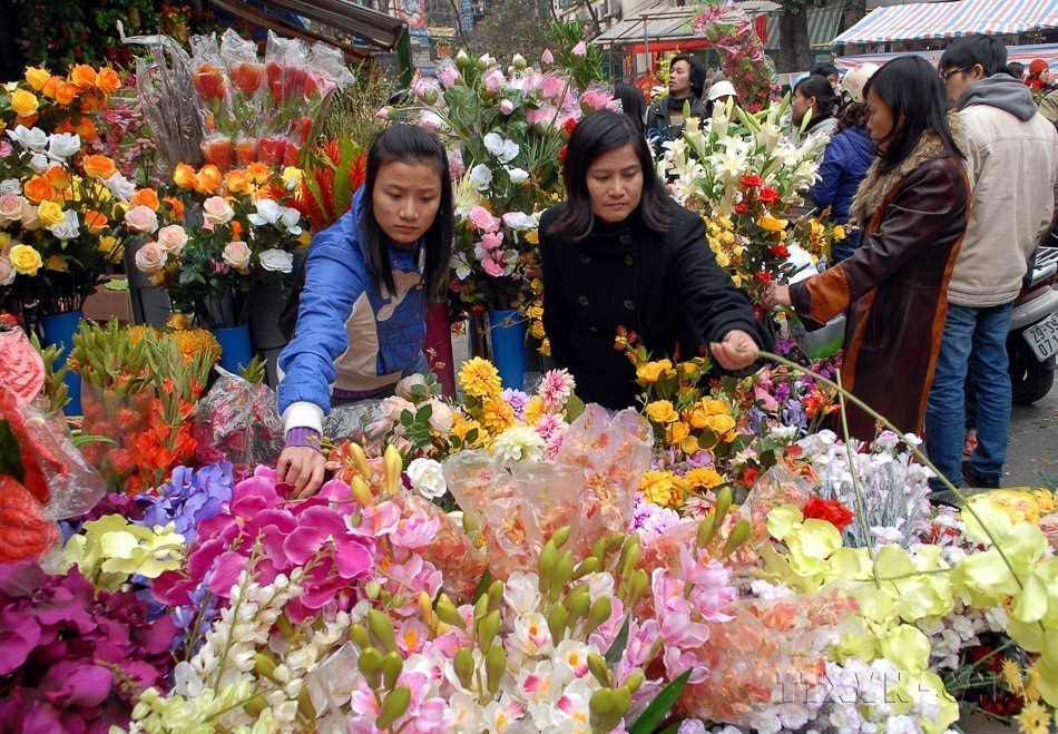 Người dân Thủ đô đi chợ hoa Hàng Lược. Ảnh: TTXVN