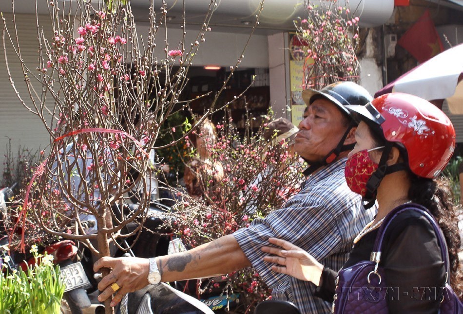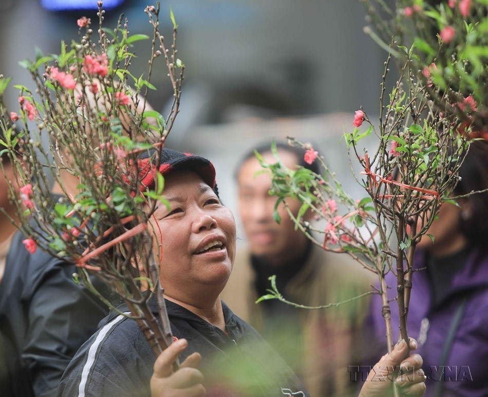 Ngày 23/1/2020 (tức ngày 29 tháng chạp), ngày đầu tiên của kỳ nghỉ Tết Nguyên đán Canh Tý, đông đảo người dân đến với chợ hoa truyền thống Hàng Lược(Hà Nội) để chọn mua đào, quất, đồ trang trí nhà cửa đón Tết. Ảnh: Thanh Tùng-TTXVN
