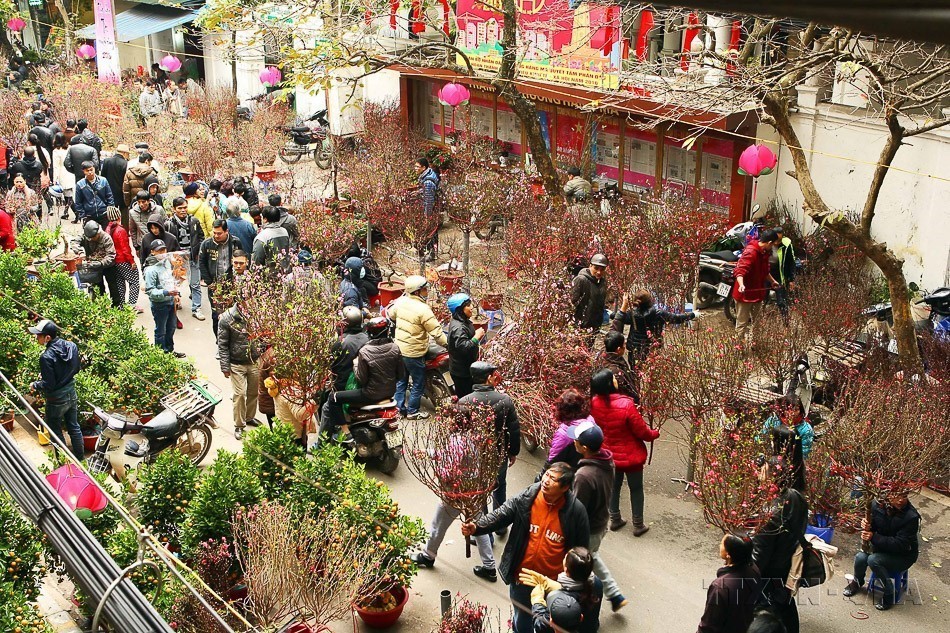 Một góc chợ hoa phố Hàng Lược Tết Bính Thân (2016). Ảnh: Tuấn Anh - TTXVN