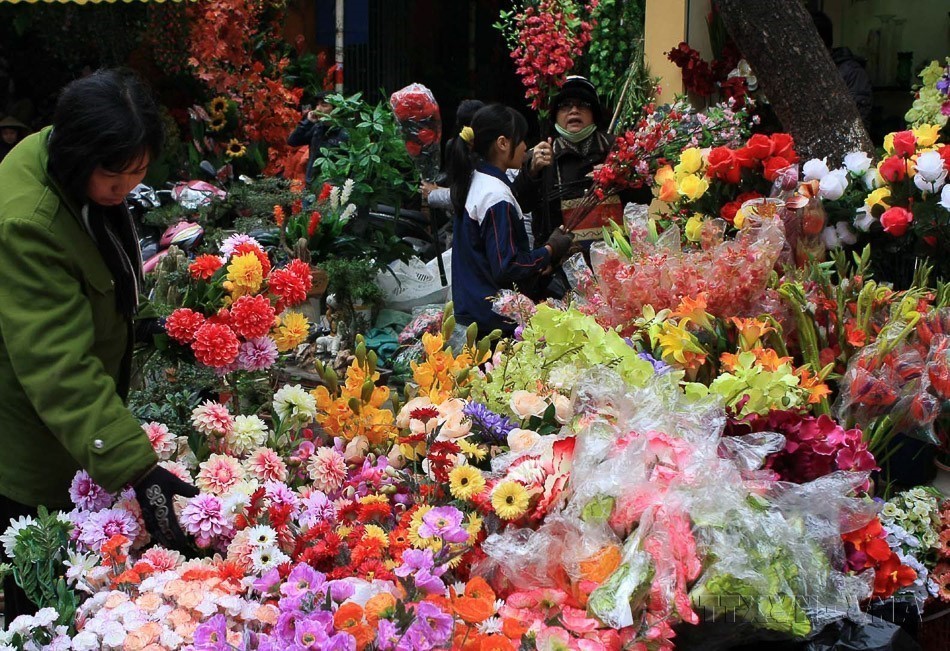 Sự đa dạng và phong phú của các loại hoa nhựa, hoa lụa của chợ hoa Hàng Lược, cũng là lựa chọn của nhiều người đi sắm Tết Tân Mão (2011).Ảnh: Nhật Anh-TTXVN