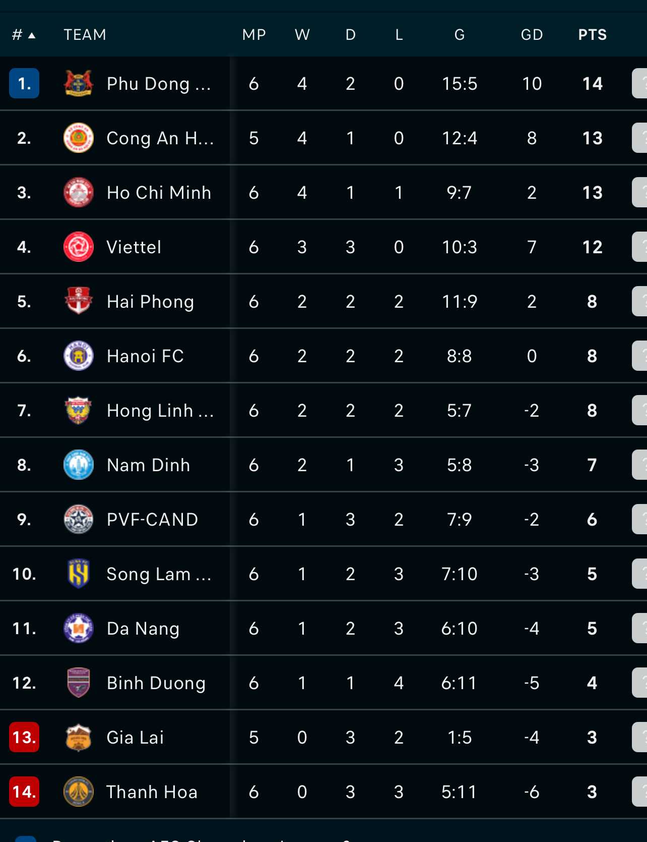 Trong khi đó, PVF CAND đứng thứ 9 với 6 điểm, chỉ kém Nam Định đúng 1 điểm. Dù không có nhiều biến động trên bảng xếp hạng, nhưng đây là trận đấu mà cả hai đội đều có lý do để tiếc nuối.