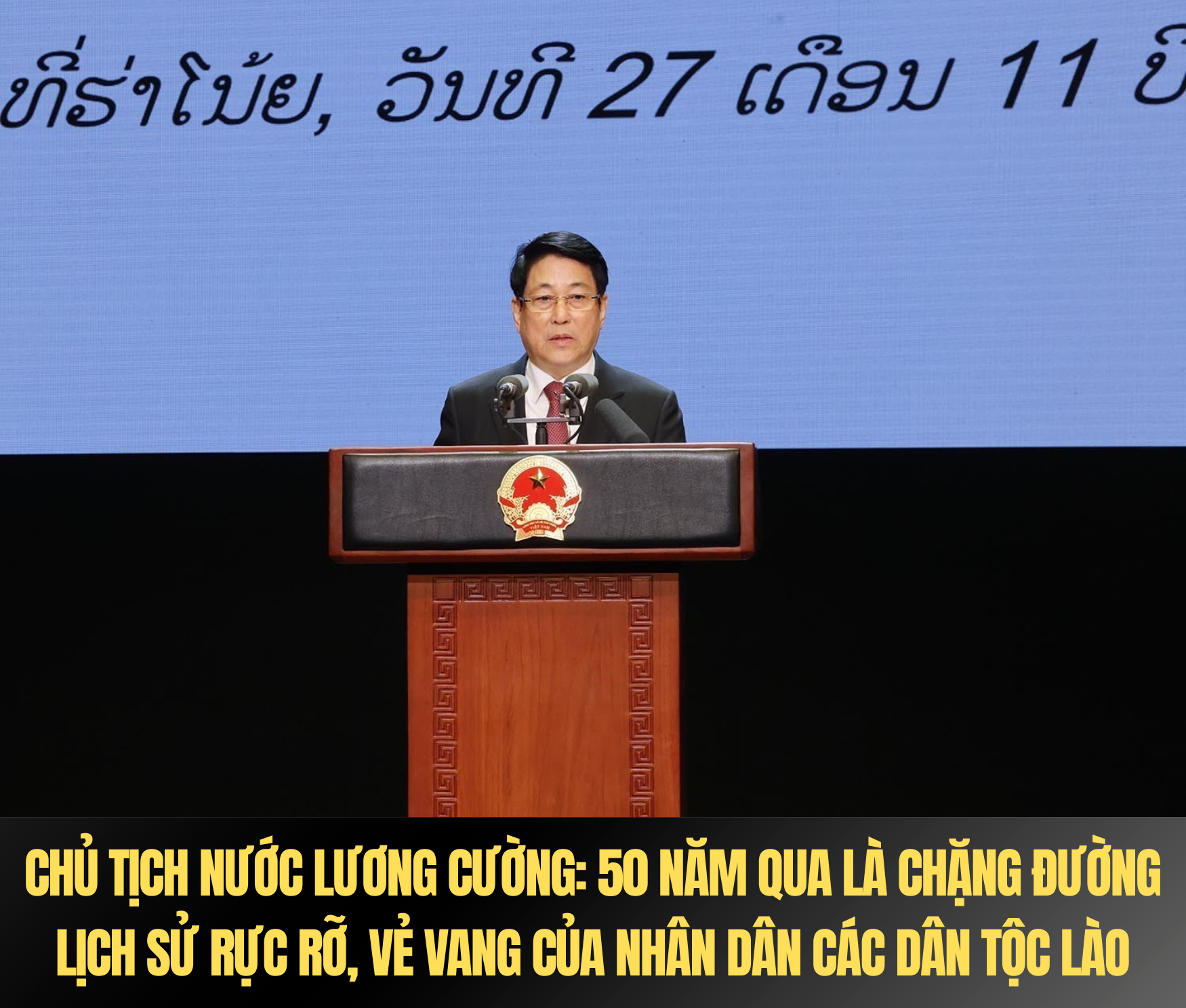 Đọc diễn văn tại lễ kỷ niệm, điểm lại những dấu mốc lịch sử quan trọng của Cách mạng Lào, Chủ tịch nước Lương Cường nêu rõ, dưới sự lãnh đạo của Đảng Nhân dân Cách mạng Lào, nhân dân Lào đã đoàn kết, chiến đấu bền bỉ, anh dũng và giành được những thắng lợi rất vẻ vang. Ngày 12/10/1945, Chính phủ Lào Itxala được thành lập và ngày 2/12/1975, nước CHDCND Lào ra đời. Đây là sự kiện vĩ đại, mở ra kỷ nguyên độc lập, tự do của dân tộc Lào. Đảng Nhân dân Cách mạng Lào trở thành Đảng cầm quyền, xác định đúng đắn, rõ ràng con đường và đề ra mục tiêu, nhiệm vụ, phương hướng phát triển của đất nước Lào trong giai đoạn mới.