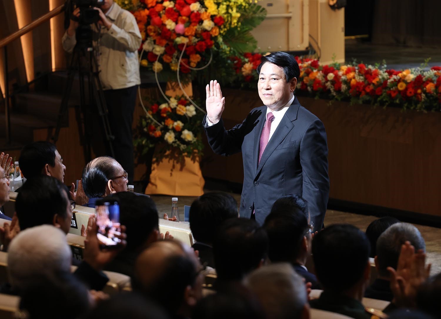 Chủ tịch nước Lương Cường và các đại biểu dự Lễ kỷ niệm 50 năm Quốc khánh nước Cộng hòa Dân chủ Nhân dân Lào (2/12/1975-2/12/2025) và 105 Ngày sinh Chủ tịch Kaysone Phonvihane. Ảnh: Lâm Khánh – TTXVN
