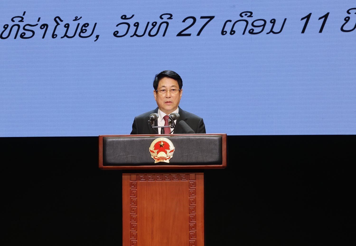 Nhắc lại câu nói của Chủ tịch Kaysone Phomvihane lúc sinh thời: "Chúng ta hãy gìn giữ và vun đắp cho mối tình đoàn kết hữu nghị Việt Nam - Lào mãi mãi vững bền, mãi mãi trong sáng như viên ngọc quý, vì đó là kết tinh của nghĩa, của tình, của bao công sức, tâm trí và cả máu xương của cả hai dân tộc anh em", Chủ tịch nước cho rằng, tư tưởng ấy vẫn còn nguyên giá trị trong quan hệ hữu nghị vĩ đại, đoàn kết đặc biệt và hợp tác toàn diện Việt Nam - Lào, Lào - Việt Nam; cần đặc biệt trân trọng, tri ân công lao của các thế hệ lãnh đạo và nhân dân hai nước đã cống hiến, hy sinh để đổi lấy hòa bình, độc lập, tự do ngày nay.