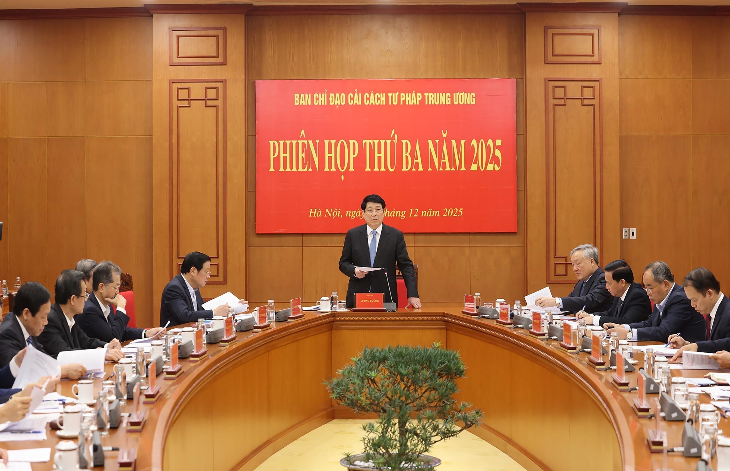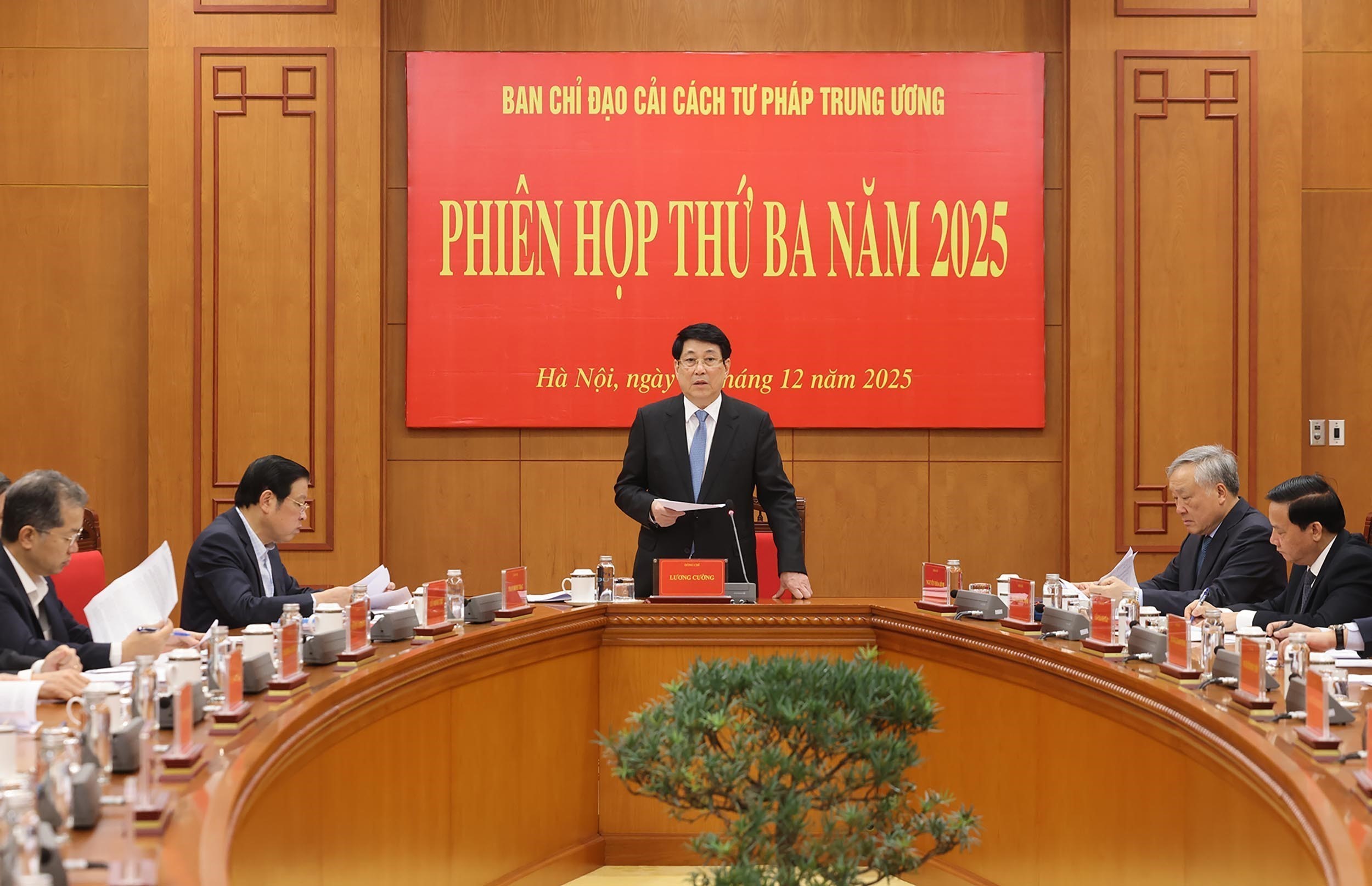Sáng 25/12/2025, tại Trụ sở Trung ương Đảng, Ban Chỉ đạo cải cách Tư pháp Trung ương họp phiên thứ ba năm 2025, dưới sự chủ trì của đồng chí Lương Cường, Uỷ viên Bộ Chính trị, Chủ tịch nước, Trưởng Ban Chỉ đạo.