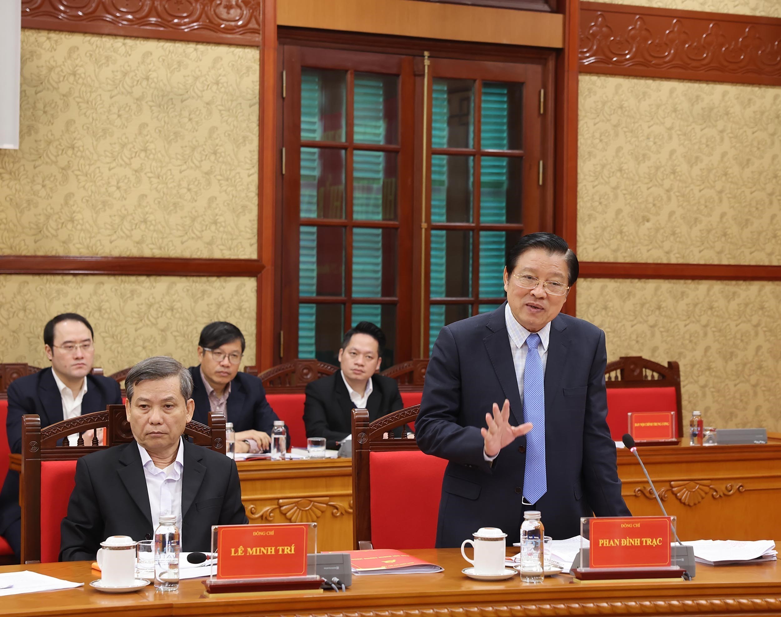 Đồng chí Phan Đình Trạc, Uỷ viên Bộ Chính trị, Bí thư Trung ương Đảng, Trưởng Ban Nội chính Trung ương, Phó Trưởng ban Thường trực Ban Chỉ đạo phát biểu. Ảnh: Lâm Khánh – TTXVN