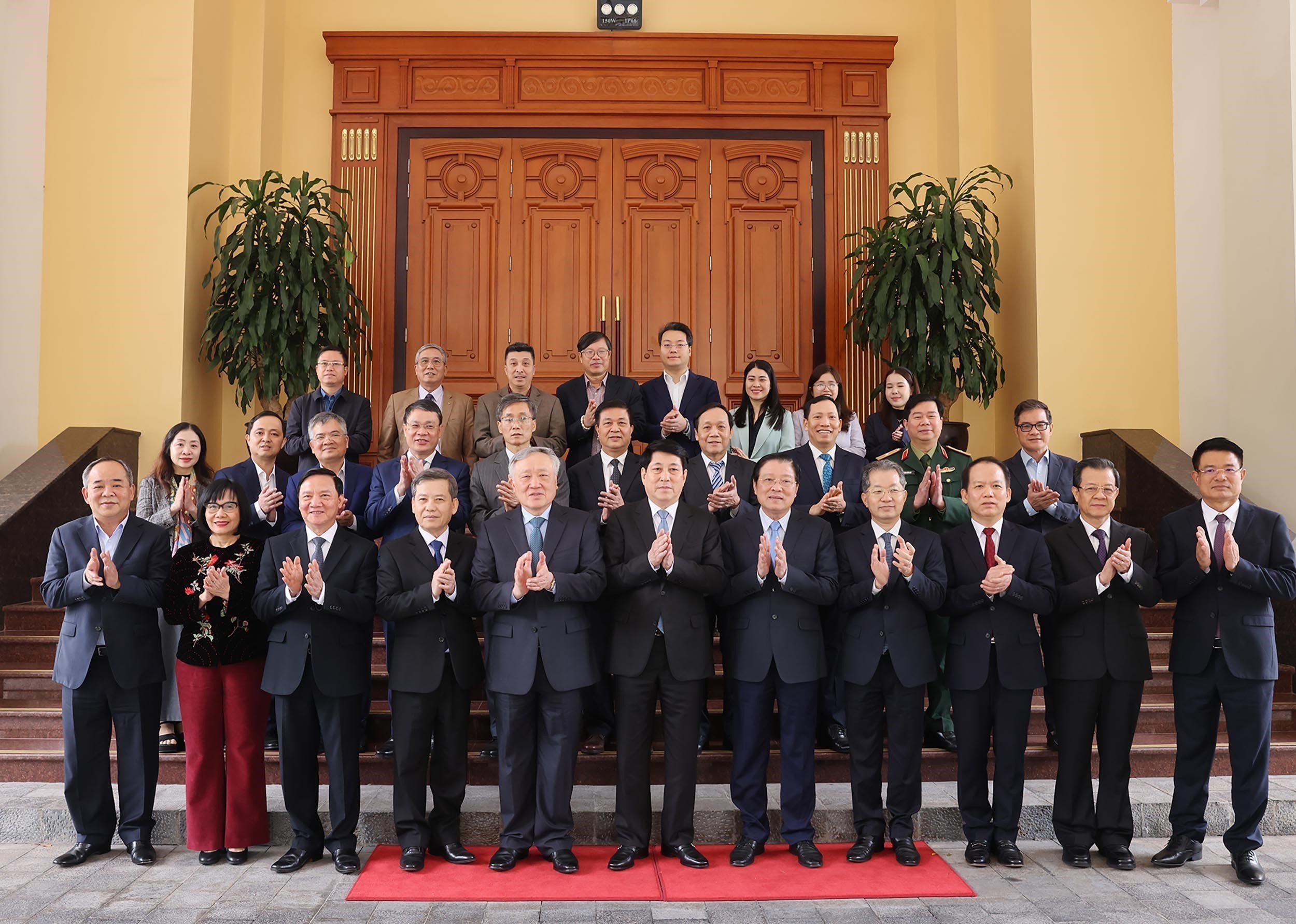 Chủ tịch nước Lương Cường với các thành viên Ban Chỉ đạo cải cách Tư pháp Trung ương và tổ giúp việc. Ảnh: Lâm Khánh – TTXVN